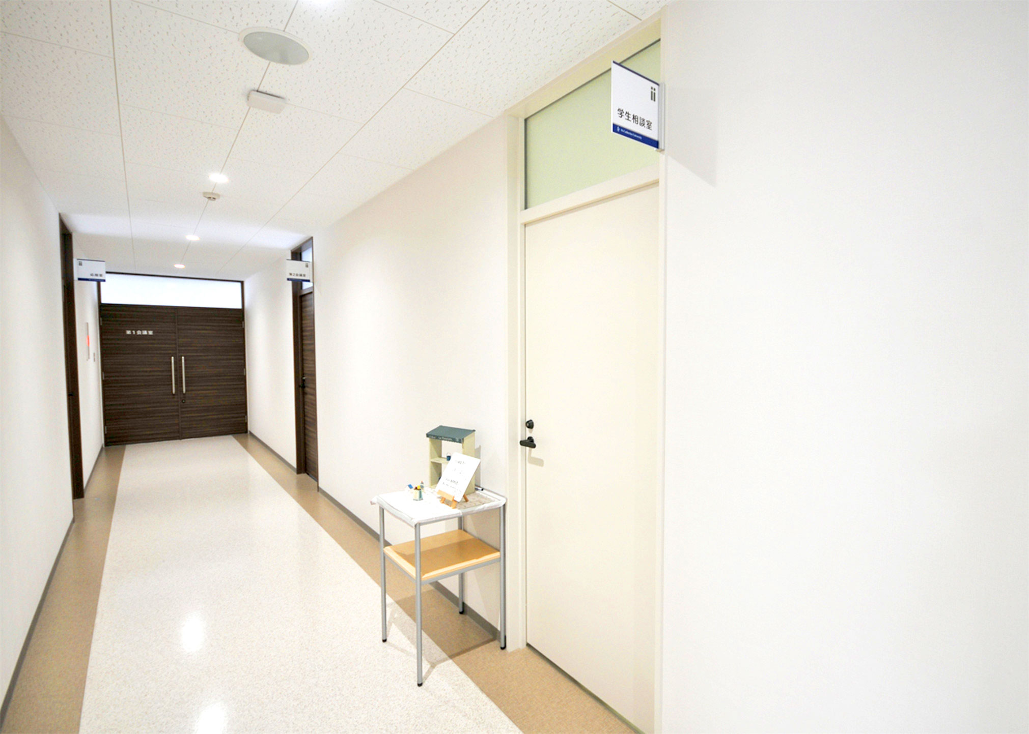 事務室・保健室にご用のある方もこちらへご来館ください。研究室 会議室 事務室 保健室