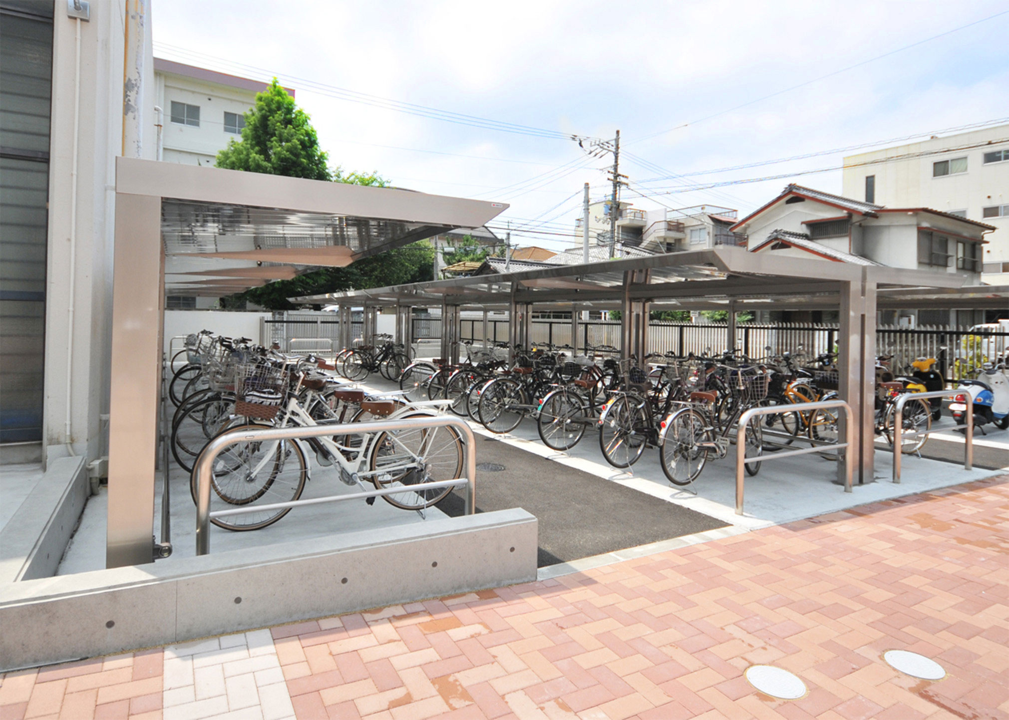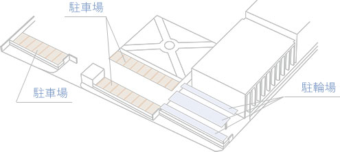 正門入り口の両脇に駐車場・駐輪場をご用意しています。