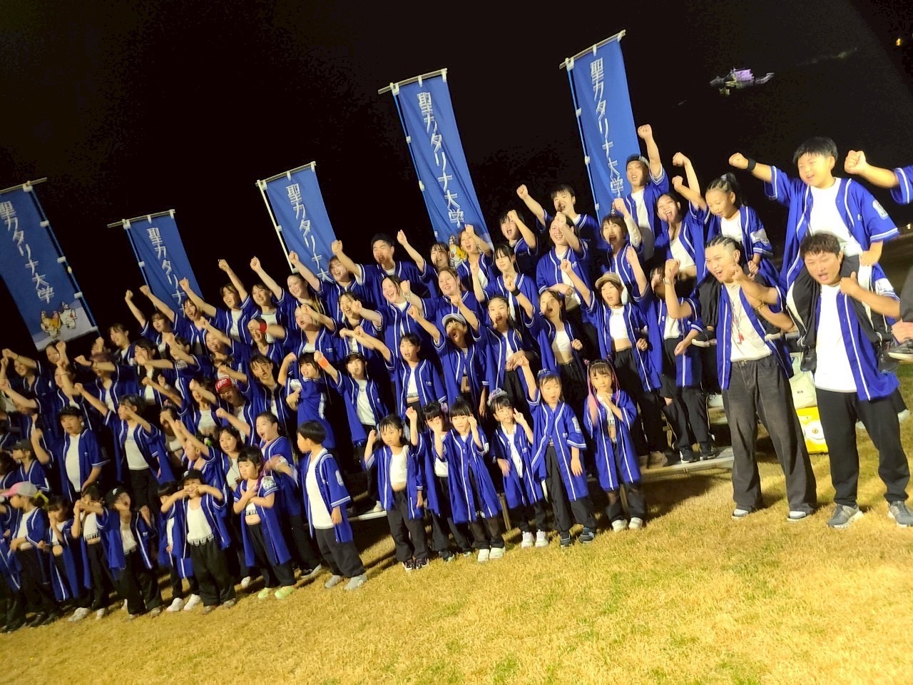 今年度の聖カタリナ学園連は、学生・高校生・卒業生・キッズたち、総勢95名で参加。創立100周年という節目の年に、世代を超えた若い力が一体となり、迫力あるパフォーマンスを披露しました。