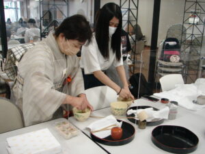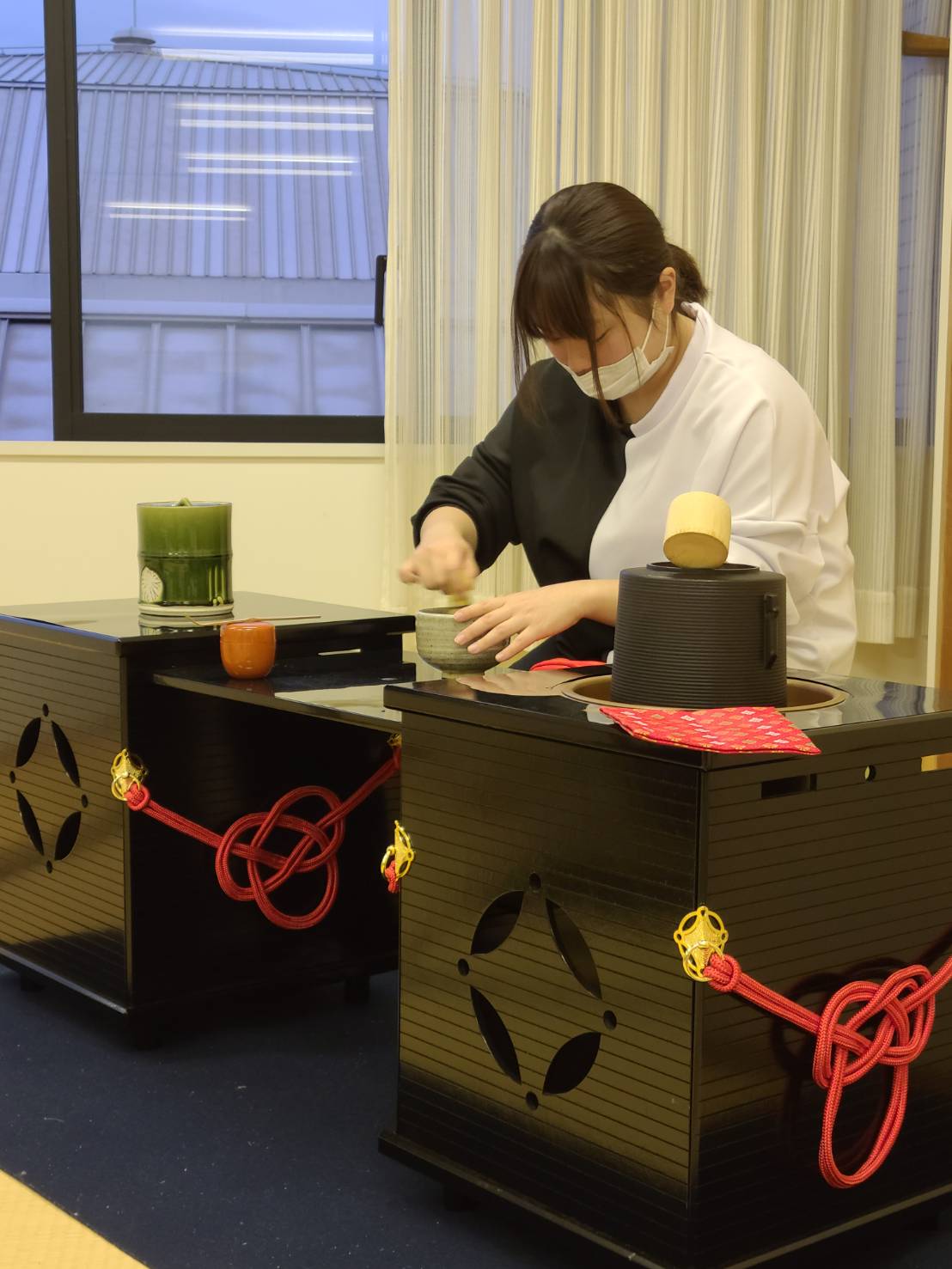 茶道の経験のない方、男子も女子も誰でも大歓迎です。和やかな雰囲気で活動しており、部員や先生方との交流も楽しいです!はじめは気軽にお茶と和菓子を食べに来てみませんか?日本の伝統文化である、茶道をぜひ経験してみましょう!