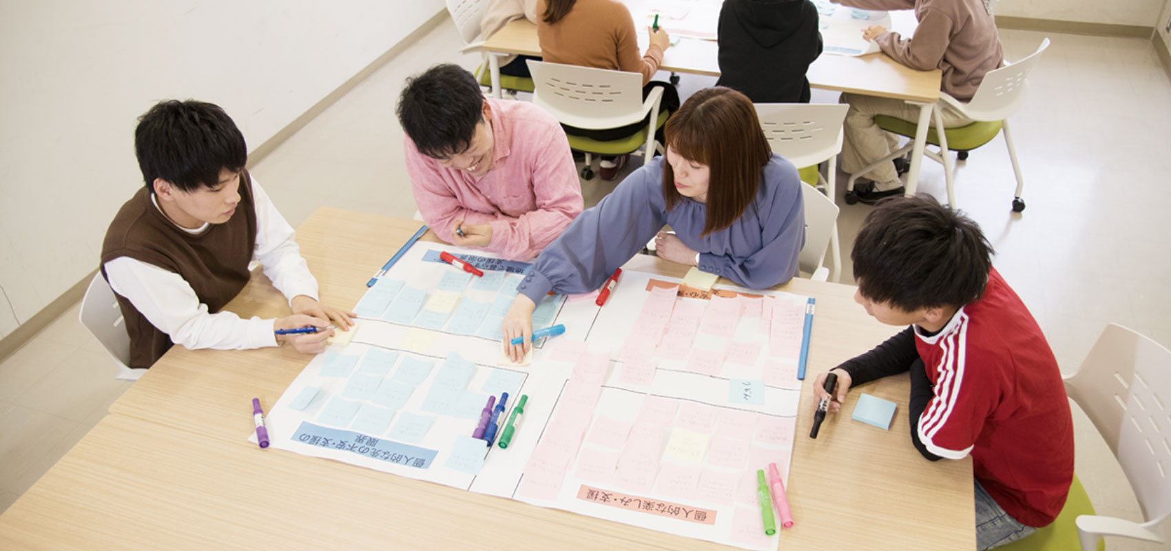 福祉系学部だからこそ開講できる多彩な科目群から、将来の進路や探求したいテーマに合わせて自由に科目を選択できるほか、学外での多様な学びが特徴となっています。