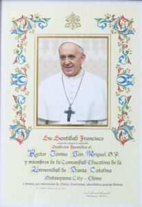 また、当日は、ホビノ・サンミゲル氏へローマ教皇フランシスコ様より贈られた「ローマ教皇祝福状」の授与も