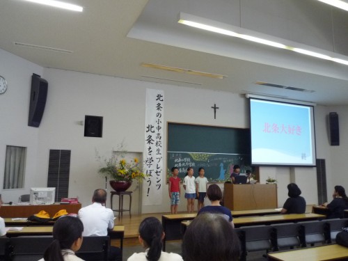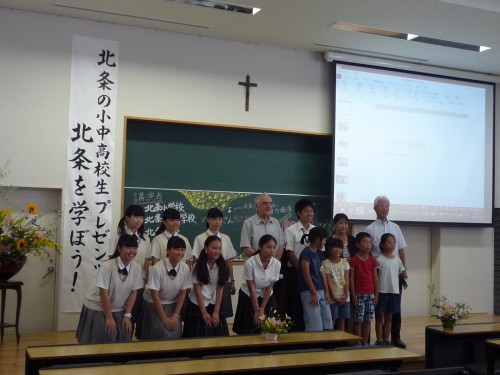 今年はボランティアセンターがまちづくり応援隊として「カタリナ散歩道」を実施していることから、「地元北条の小中高生たちも北条の魅力や宝を大講義室で発表していただこう」という企画を実施いたしました。小中高生たちは立派に、そしてこの地で生まれ育てられていることに誇りを持って、北条の魅力を発信してくださいました。