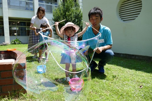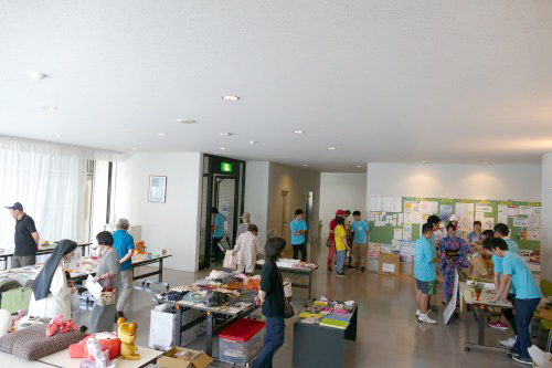 今年はボランティア協議会の方々も参加してくださり、プロの支援者(要約筆記・ホワイトボード作成・車椅子介助など)として来場者と関わってくださり、さらに災害ボランティア募集に回りながら、ボランティアフェスタを盛り上げてくださいました。また、恒例の施設や地域の方々のブース、バザー、フリーマーケット、そして今回初のかがくあそび工房、ピアノサロンコンサート、竹取物語のスタンプラリーなど多くの方々にご参加いただき、募金していただくことができました。