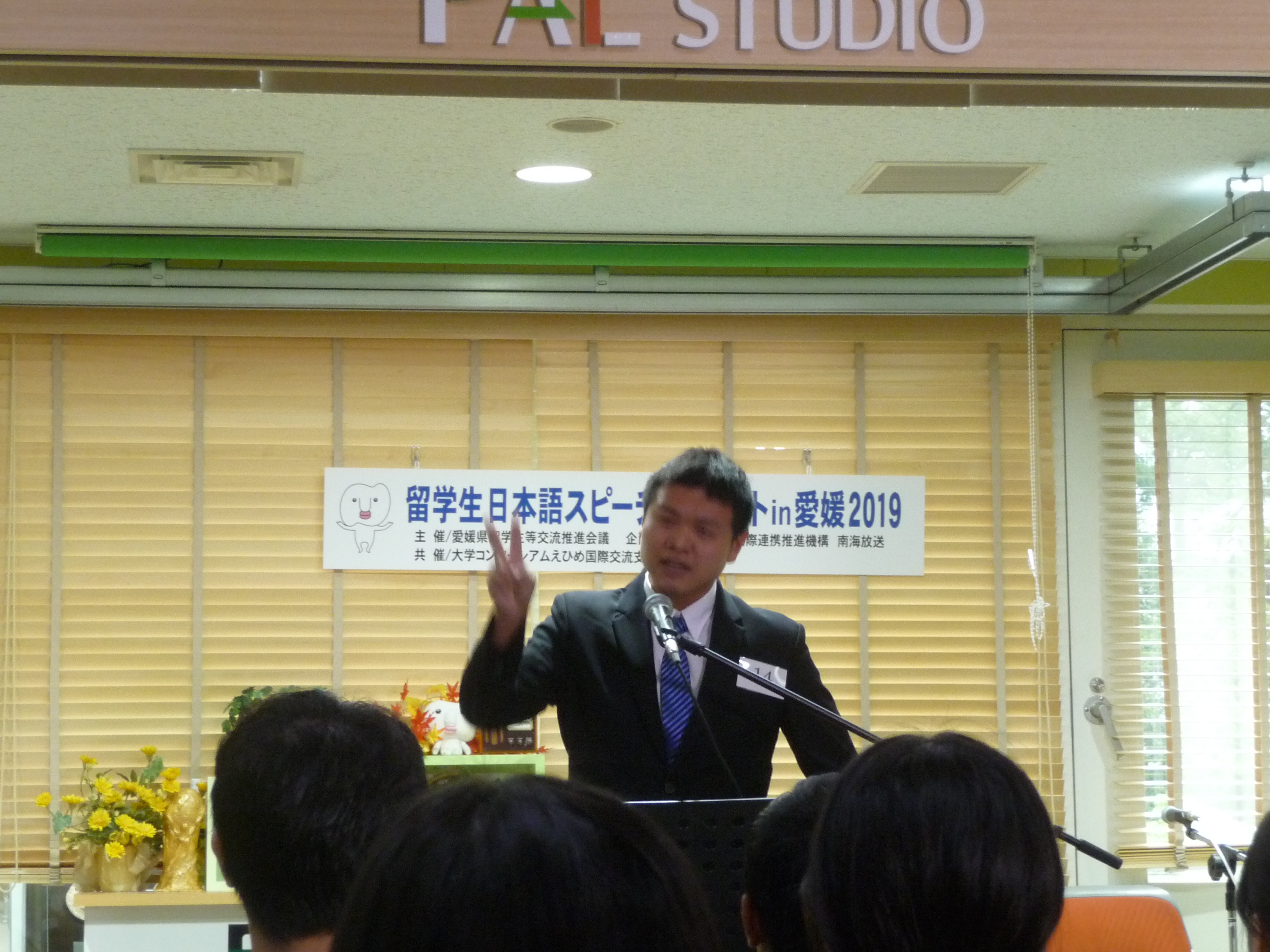 11月3日(日)に、愛媛県留学生等交流推進会議主催の「第16回留学生日本語スピーチコンテストin愛媛2019」が南海放送本町会館で開催されました。