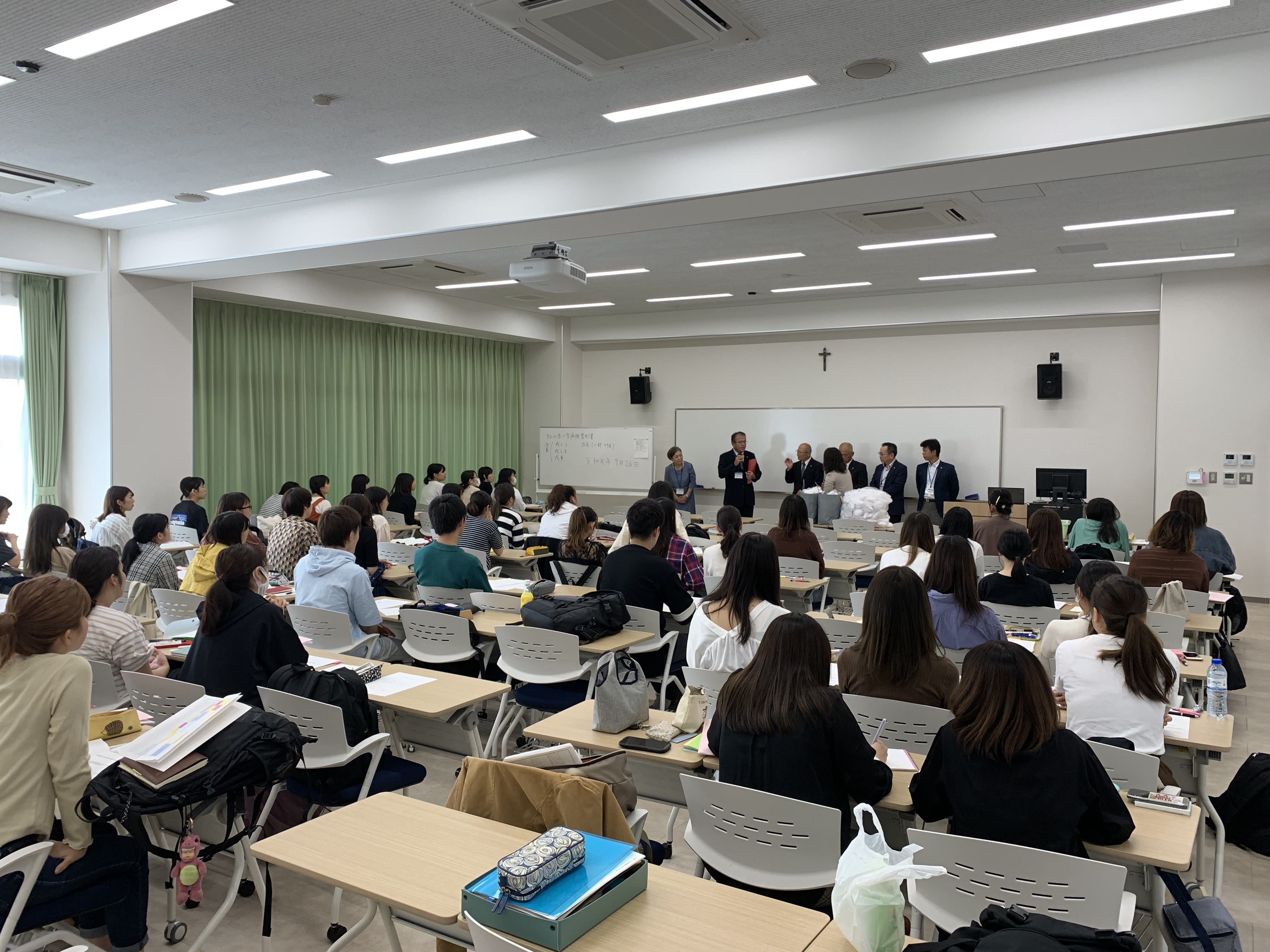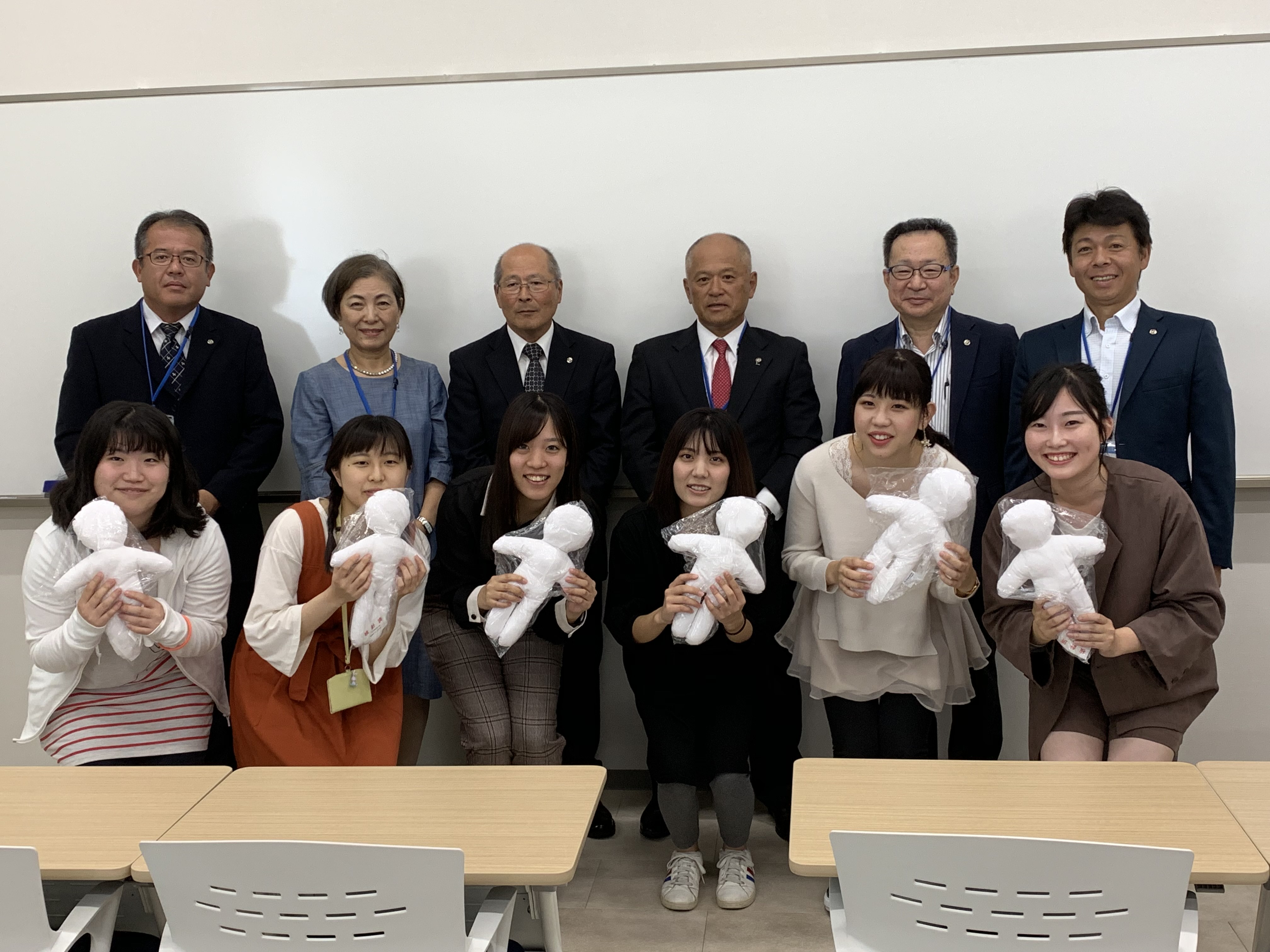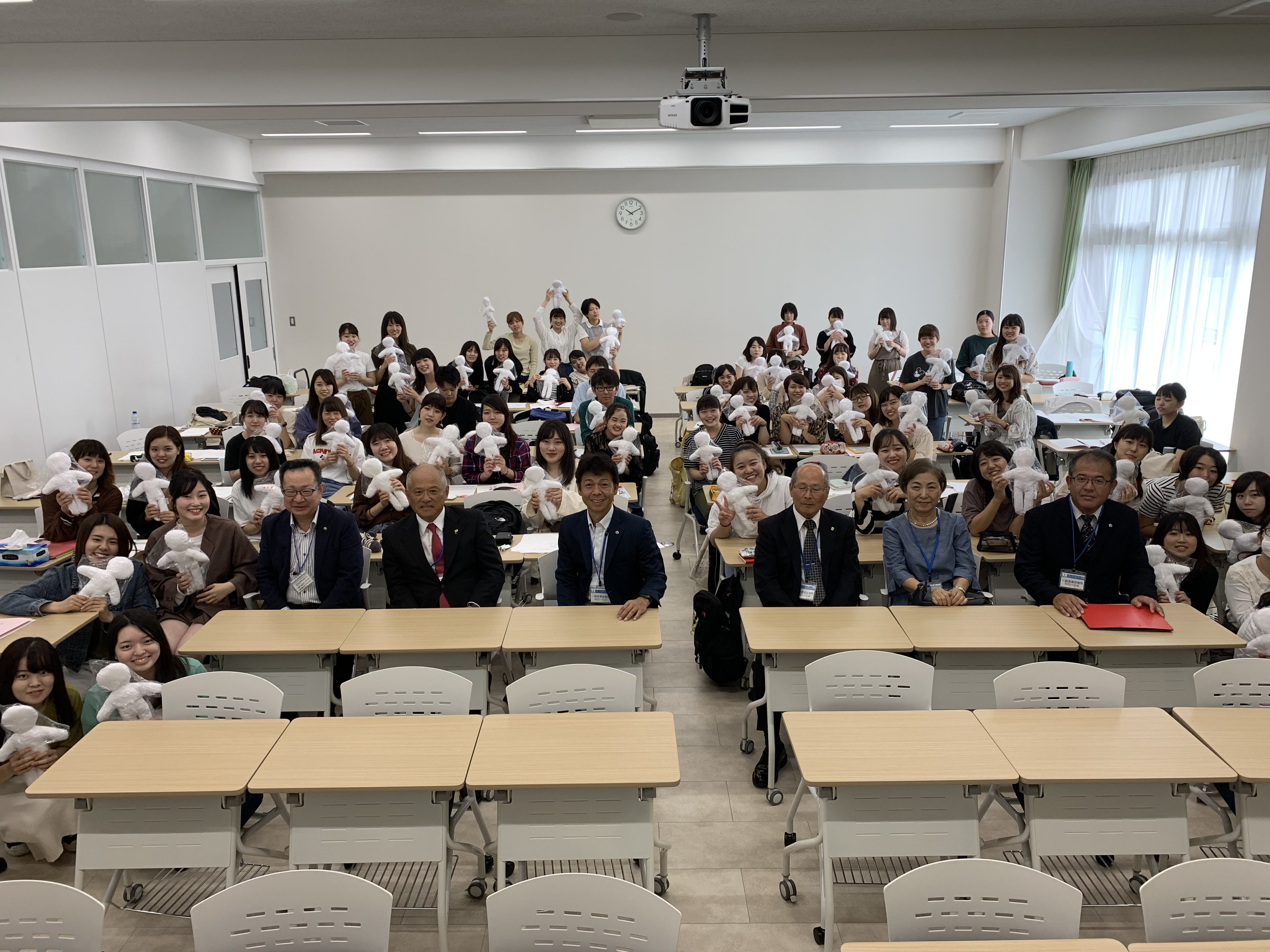 この度、同クラブの皆様がボランティアで作成してくださった66体のキワニスドールを寄贈先第一号として、9月26日(木)に看護学科へ寄贈してくださいました。キワニスドールは、病気で病院に入院・通院中の子どもたちや特別支援学校の子どもたちにからだの仕組みや手術・検査の説明をする際に使用されています。