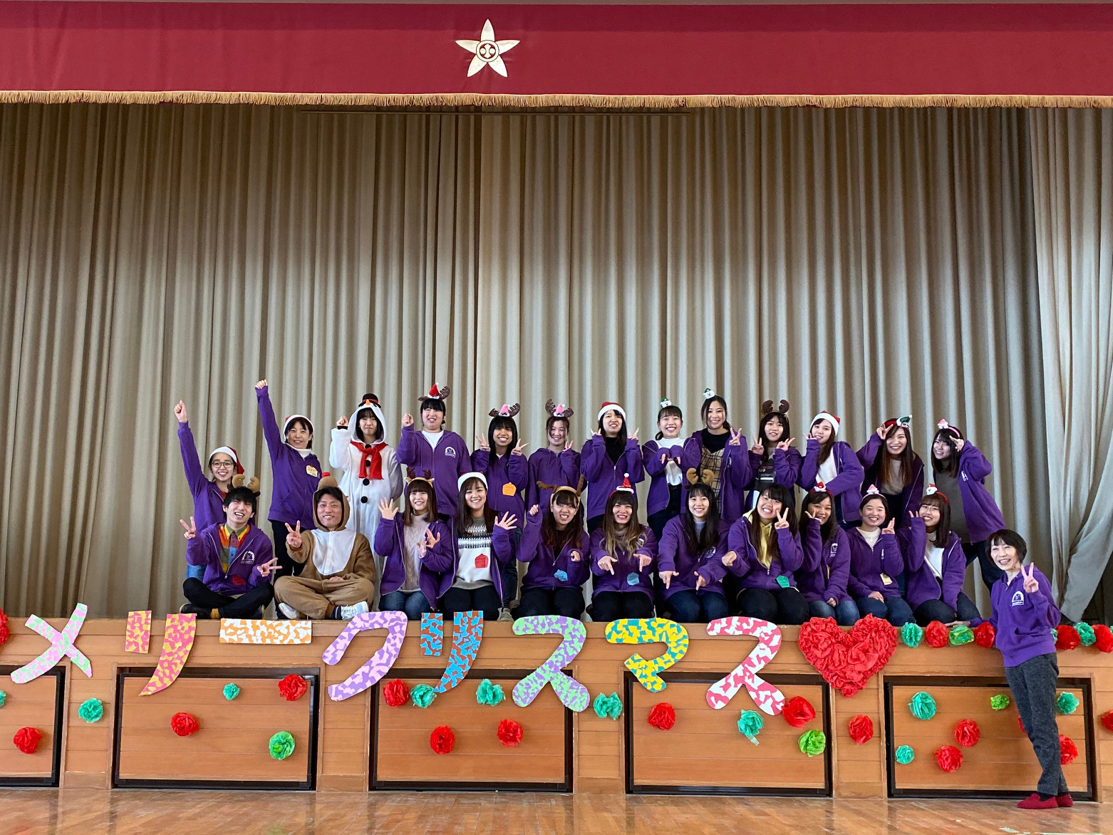 12月8日(日)、保育学科2年生が松山市立たちばな小学校でクリスマス会(主催:土居田たちばな子ども会)のイベント運営に協力しました。