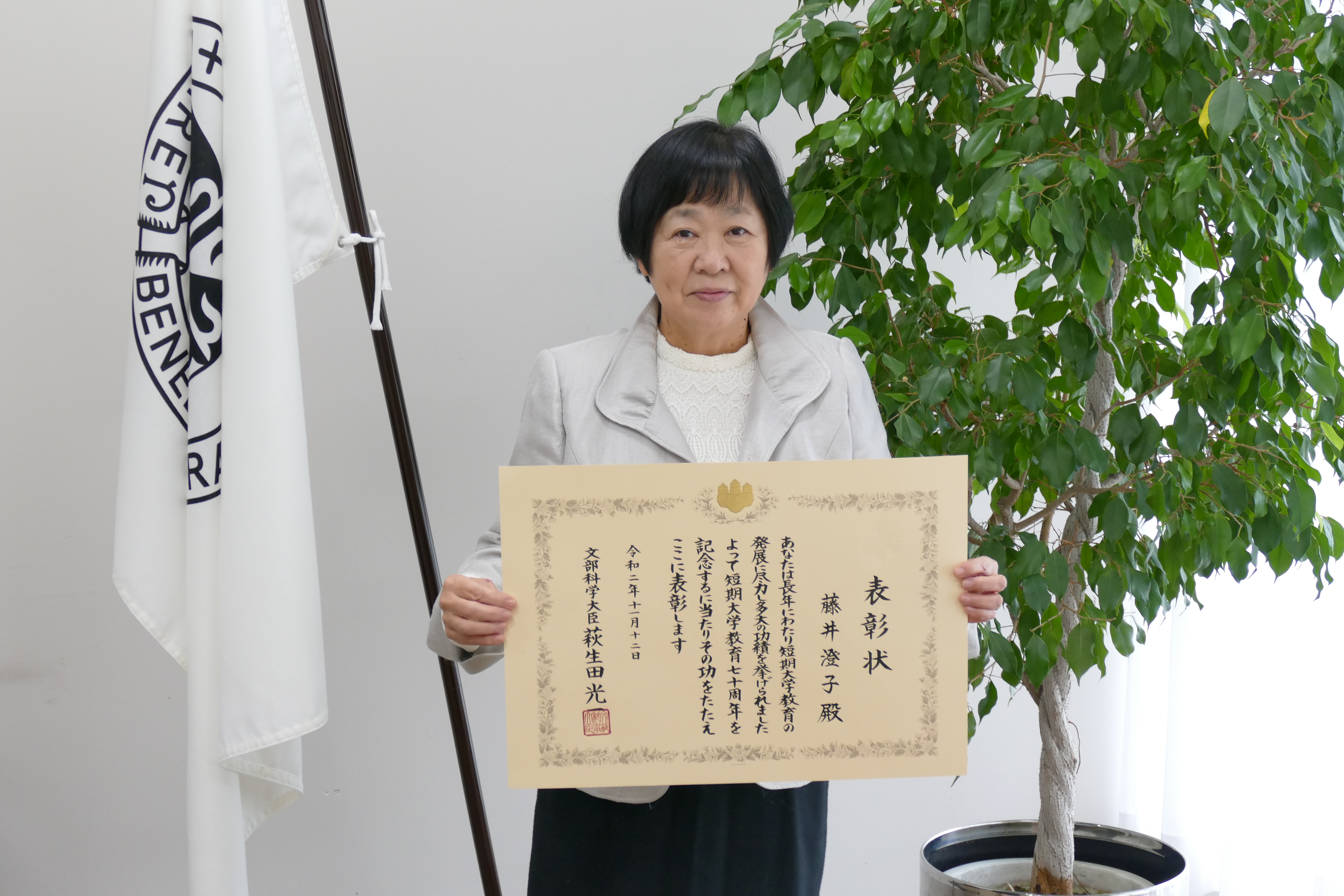 聖カタリナ大学短期大学部 保育学科 藤井澄子 教授が、文部科学大臣表彰の「短期大学教育功労者」を受賞しました。