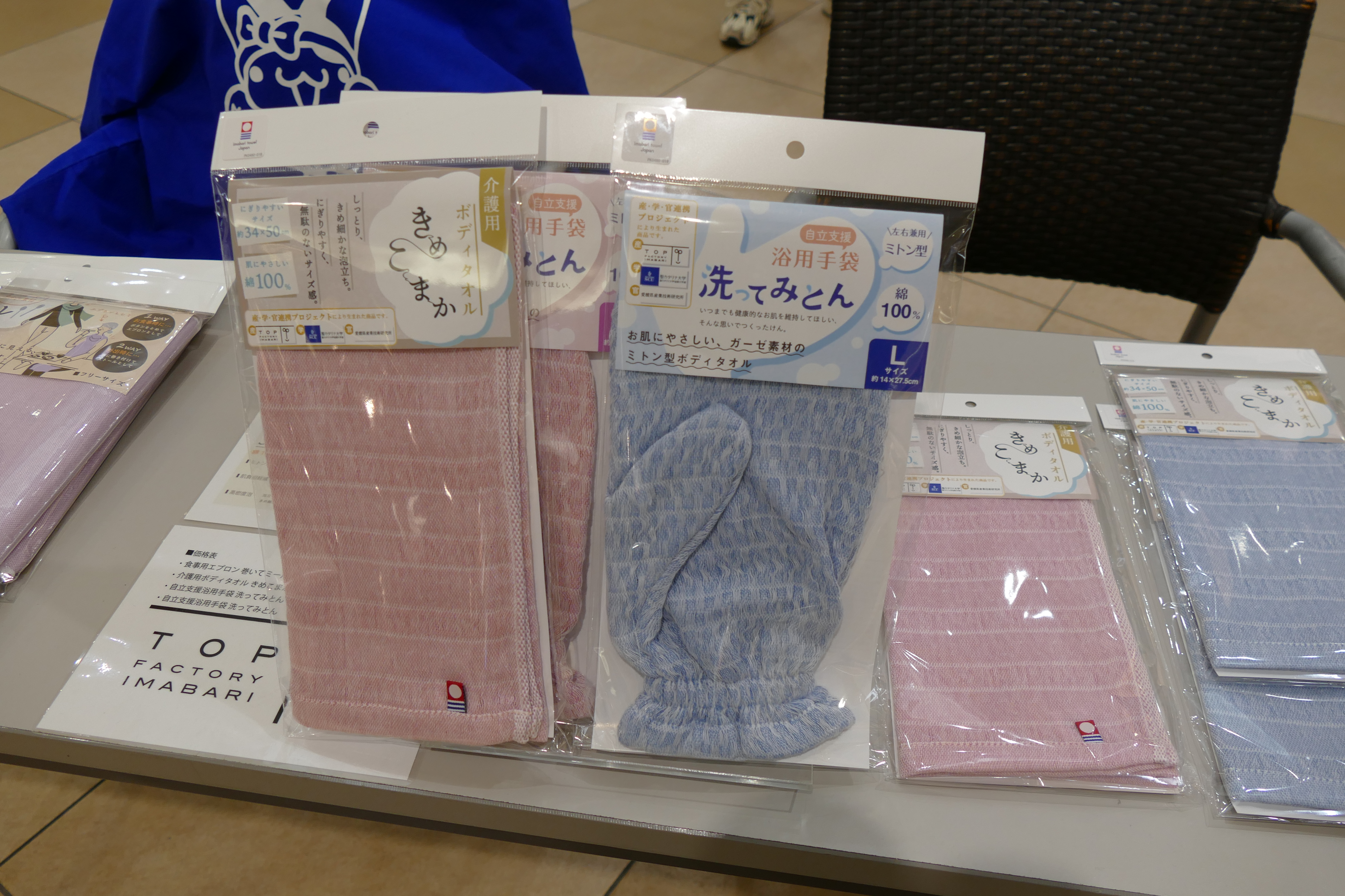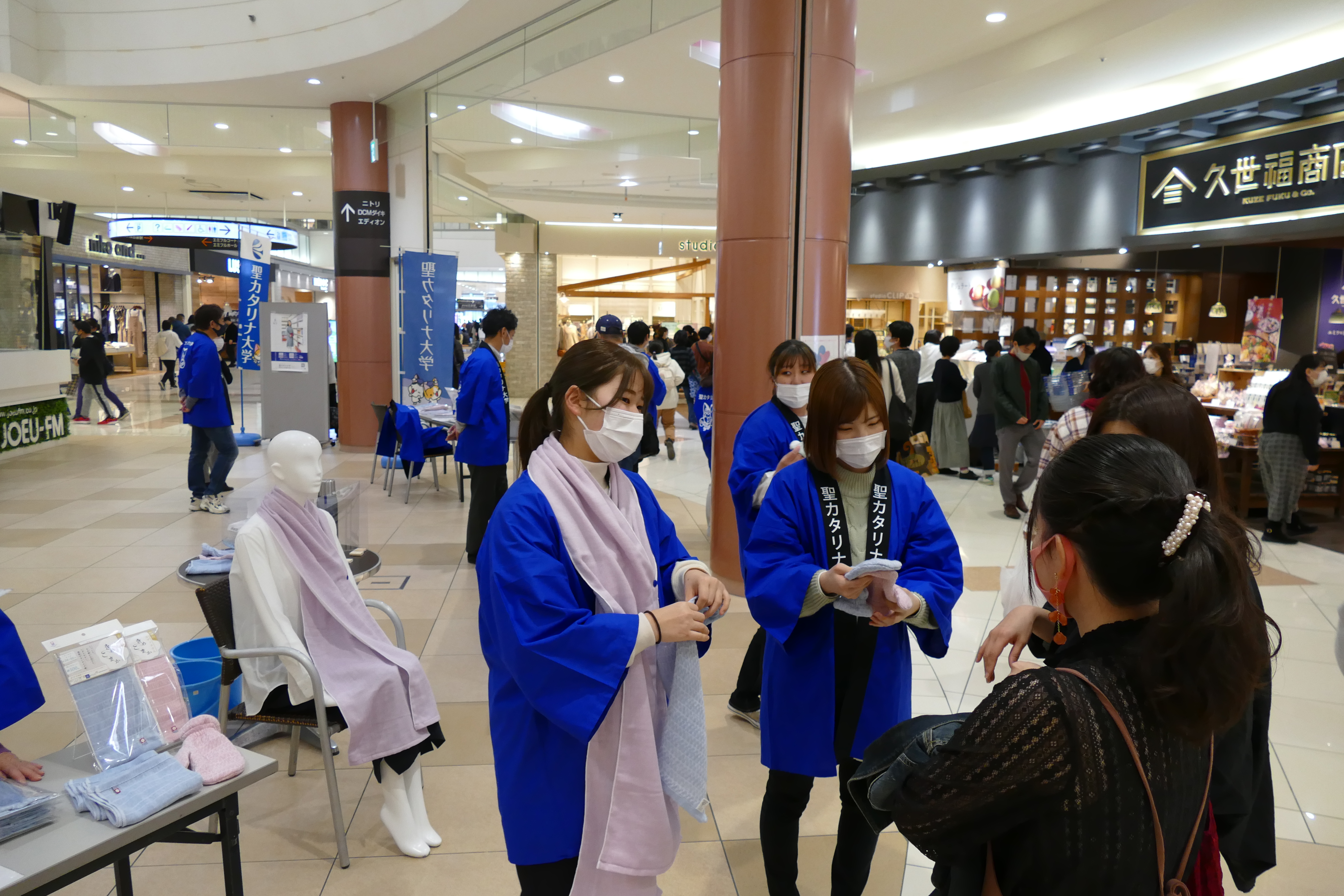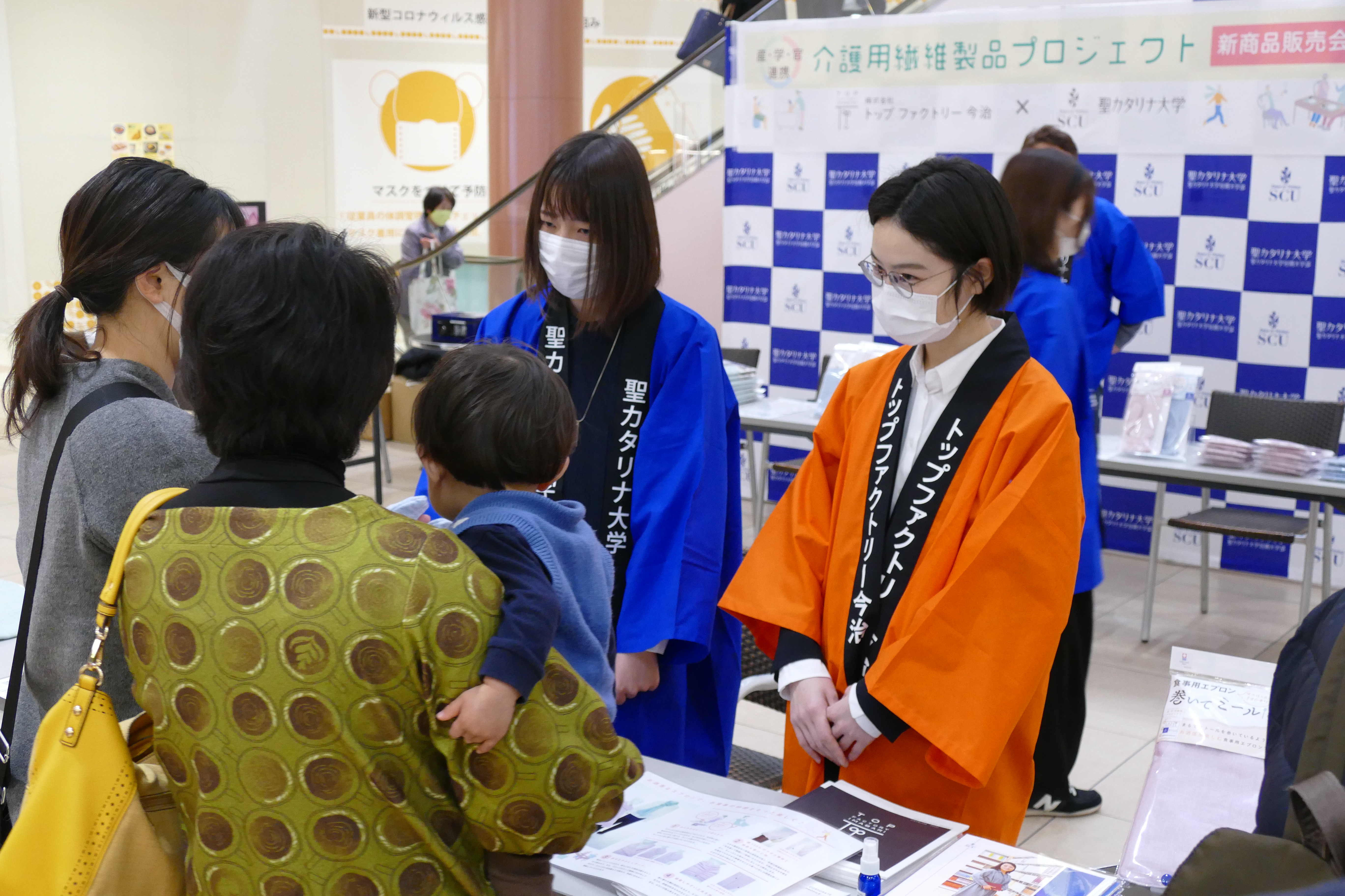 2月28日(日)、産学官連携事業(㈱トップファクトリー今治、愛媛県産業技術研究所繊維産業技術センター、聖カタリナ大学)で共同開発した新商品の販売会をエミフルMASAKIの1階フローラルコートで開催いたしました。