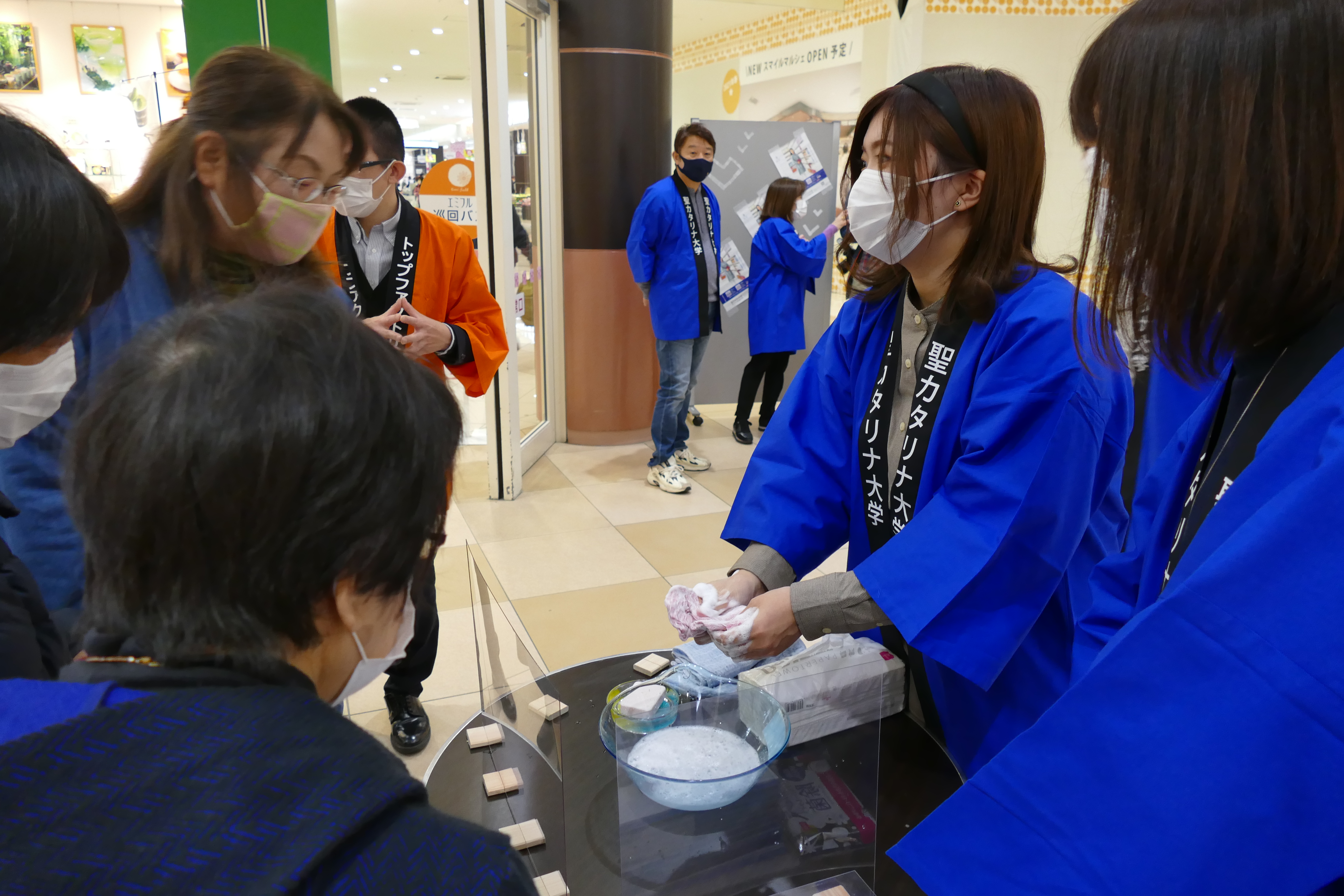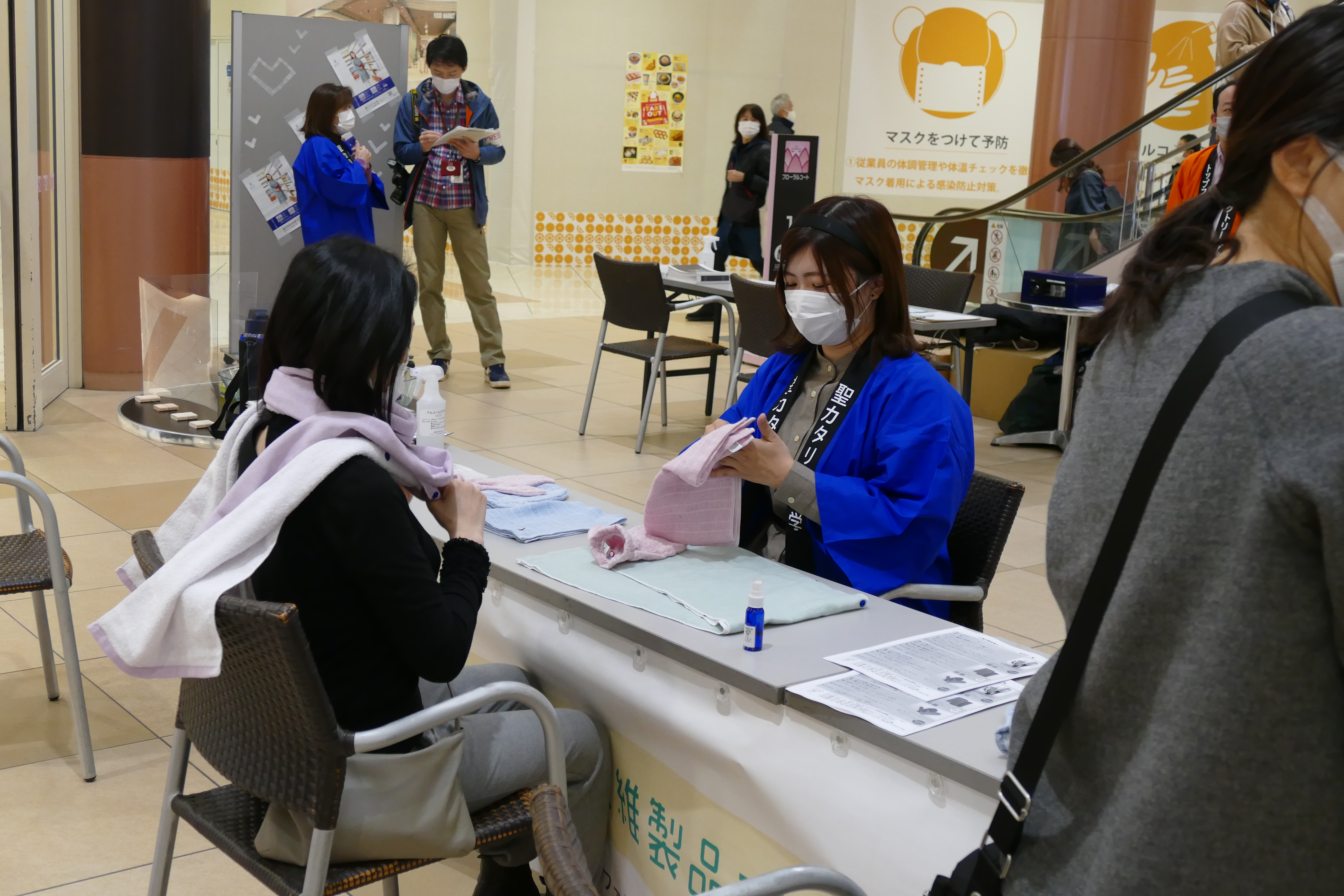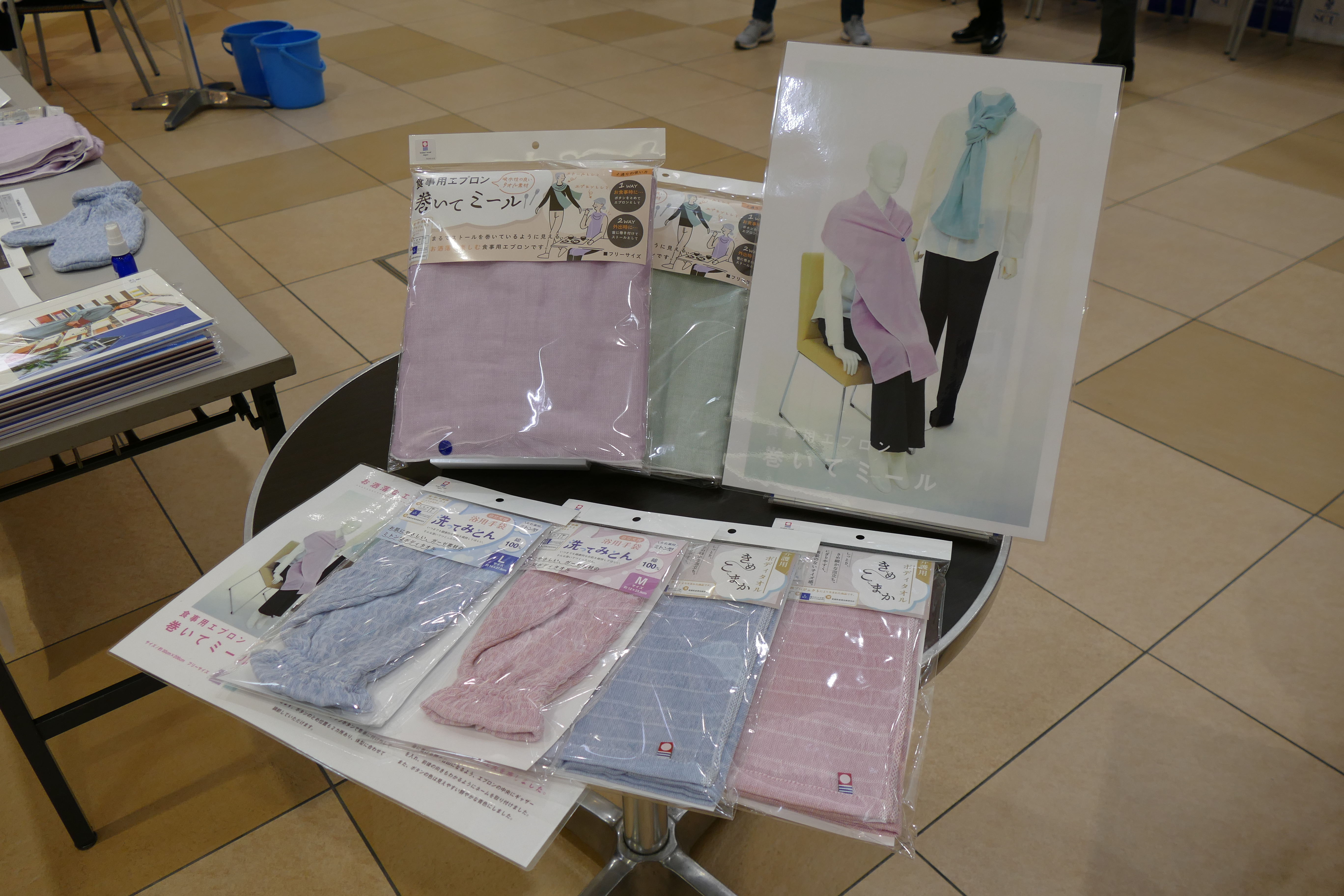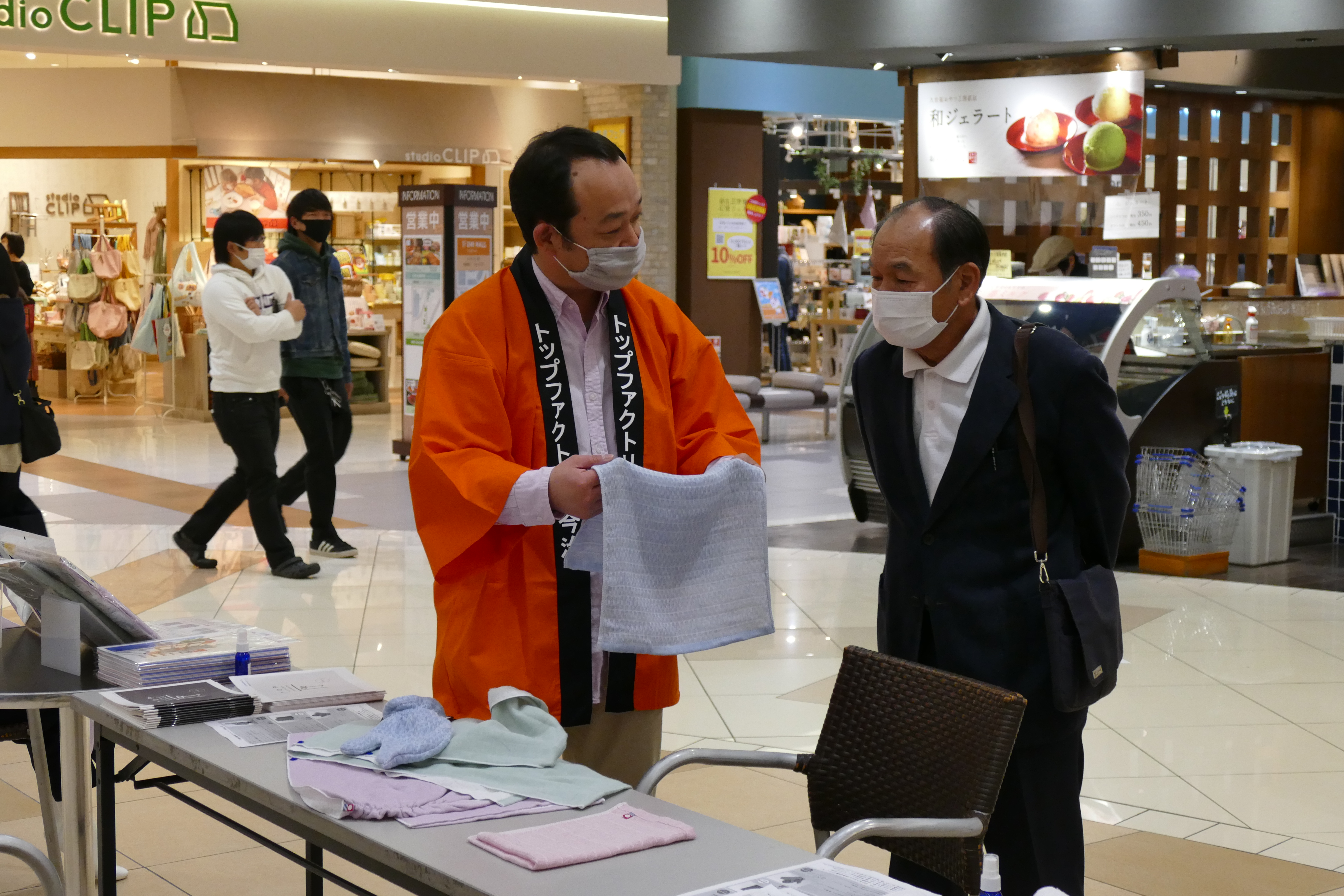2月28日(日)、産学官連携事業(㈱トップファクトリー今治、愛媛県産業技術研究所繊維産業技術センター、聖カタリナ大学)で共同開発した新商品の販売会をエミフルMASAKIの1階フローラルコートで開催いたしました。