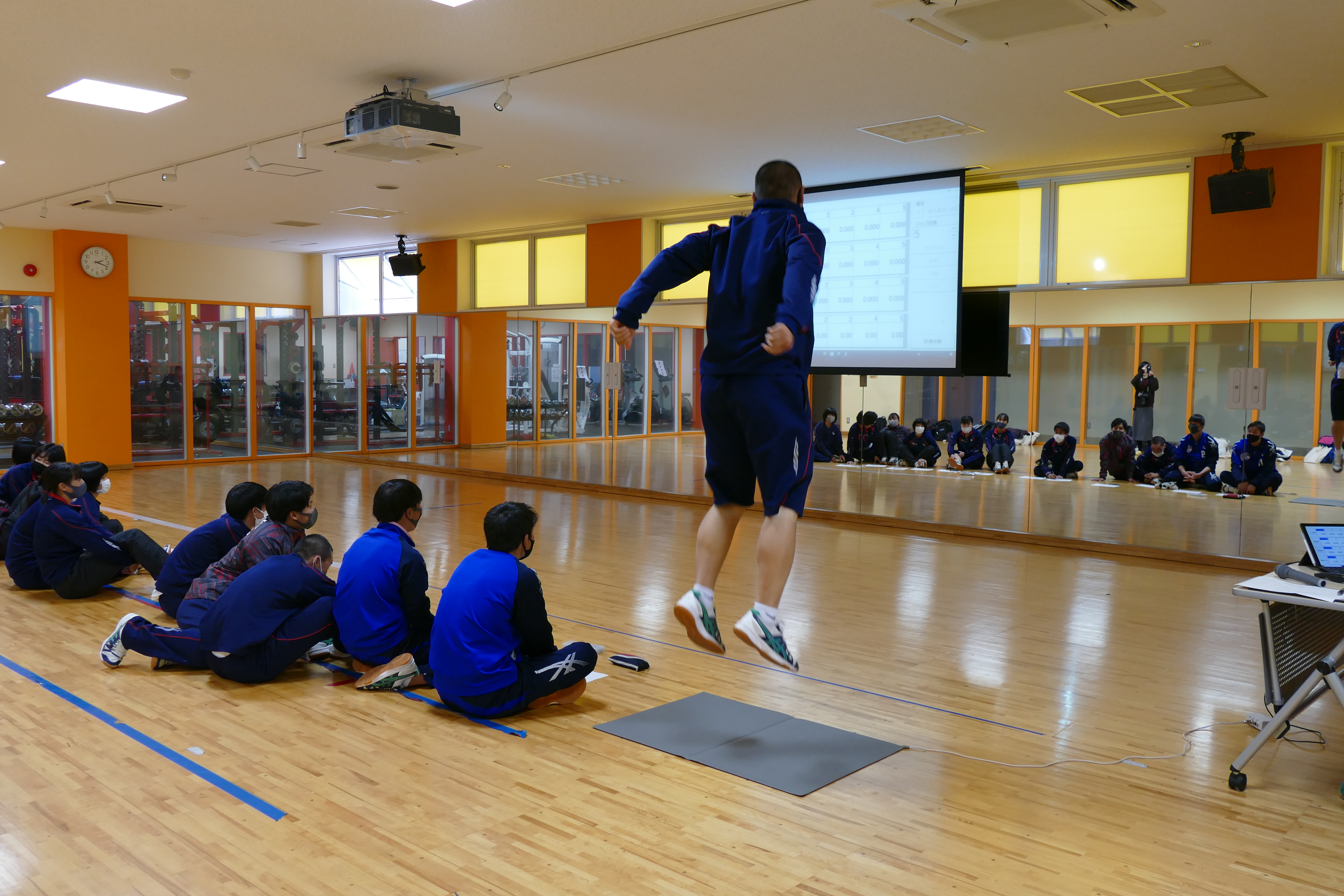 健康スポーツ学科の紹介後、午前中は「スポーツ心理学」の講義を体験いただき、午後からは施設見学後、3つのプログラム(ニュースポーツ、体力測定評価、スポーツ組織論)から2つを各自体験していただきました。