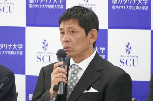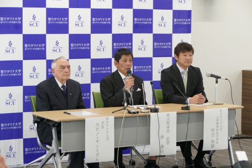 3月12日(月)には沖監督と学長 ホビノ・サンミゲルと人間健康福祉学部長 恒吉和徳が記者会見を行いました。