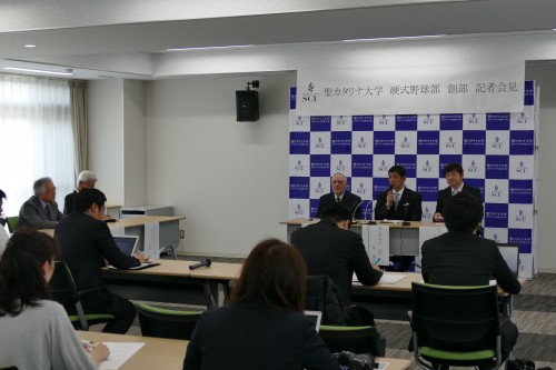 最初に人間健康福祉学部長より硬式野球部の創部の経緯、沖監督の就任までの経緯等について説明がありました。