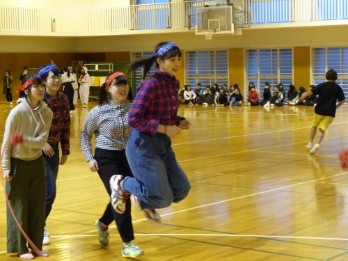 今年度のロープジャンプ大会は、1チーム7名以上で8の字跳びの連続回数を競うルールで実施しました。