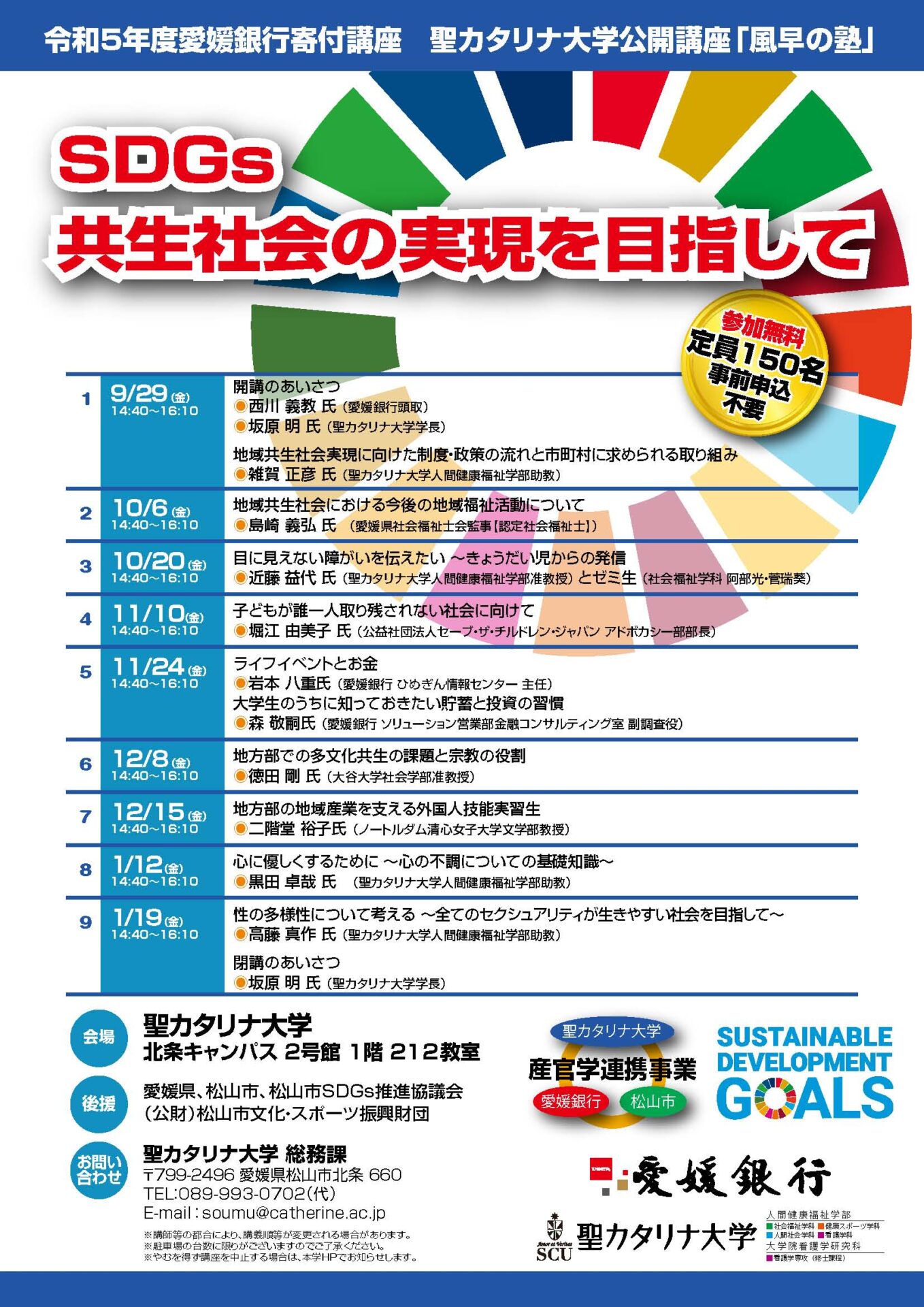 令和5年度 愛媛銀行寄付講座・聖カタリナ大学「風早の塾」公開情報: https://www.catherine.ac.jp/seminar/25521