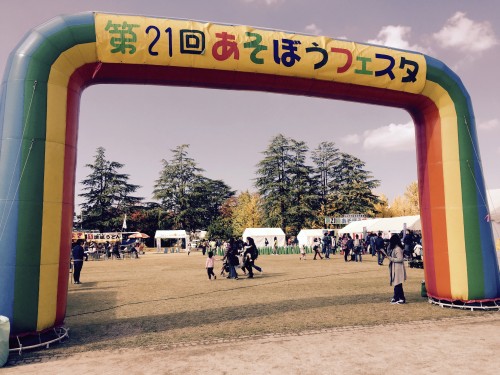 11月11日(土)、保育学科の学生約33名が城山公園やすらぎ広場で開催された「第21回あそぼうフェスタ(松山市児童館合同事業)」の各イベントの運営に協力しました。