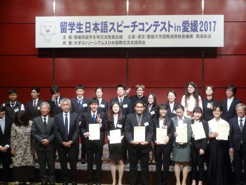 11月5日(日)に、愛媛県留学生等交流推進会議主催の「第14回留学生日本語スピーチコンテストin愛媛2017」が南海放送本町会館で開催されました。