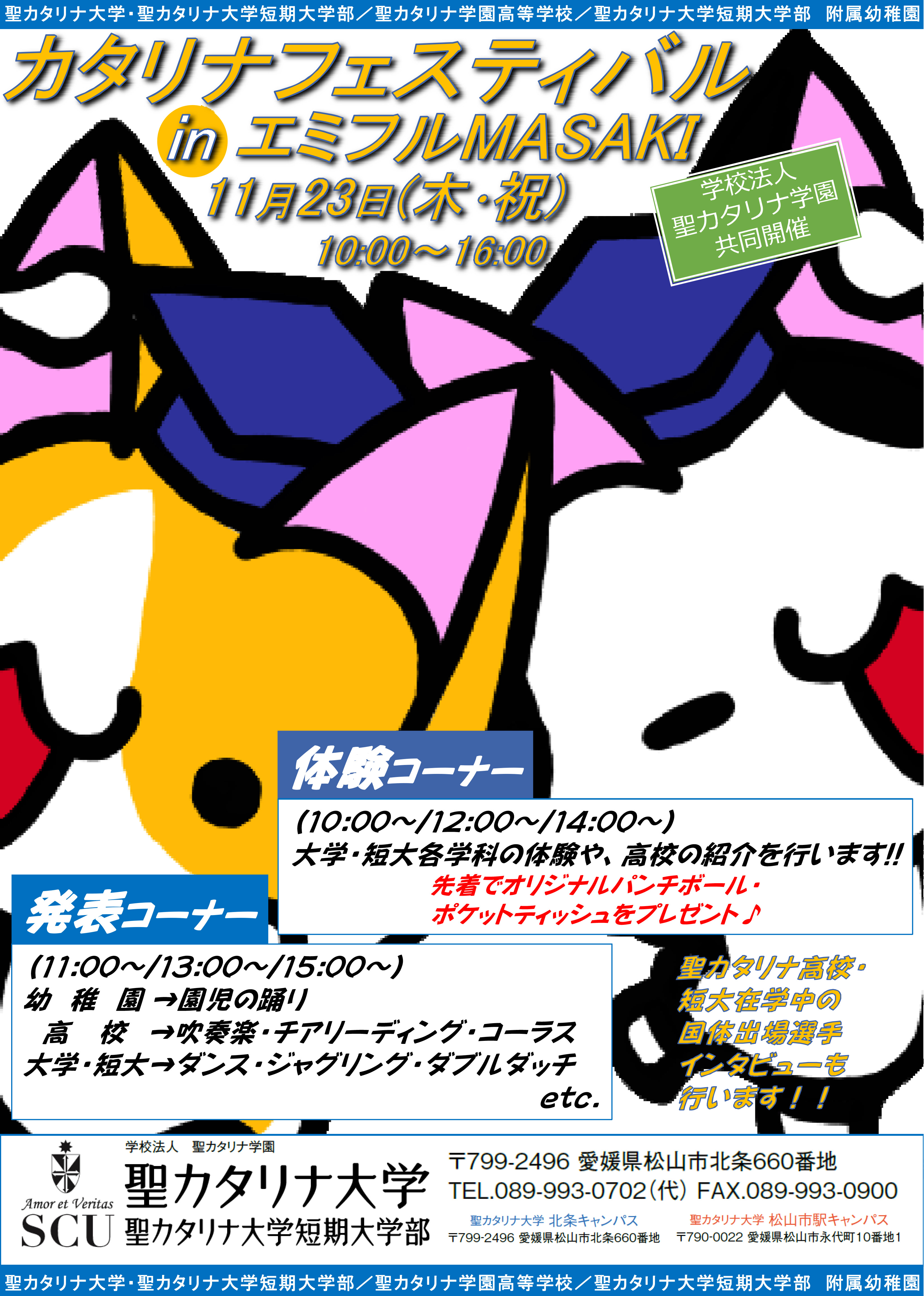 11月23日(木・祝)10時〜16時、エミフルMASAKIエミモール1階・グリーンコートで聖カタリナ学園による「カタリナフェスティバルinエミフルMASAKI」を開催します。