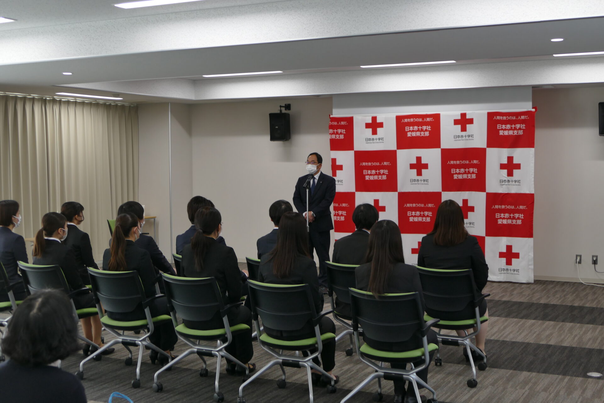 授賞者を代表して、3年生の繁宗美空さんが「赤十字救急法受講のお蔭で人命救助することができました。将来、多くの人の命を救えるような看護師になるため、今後も勉学に励みたい。」と御礼と決意の言葉を述べられました。
