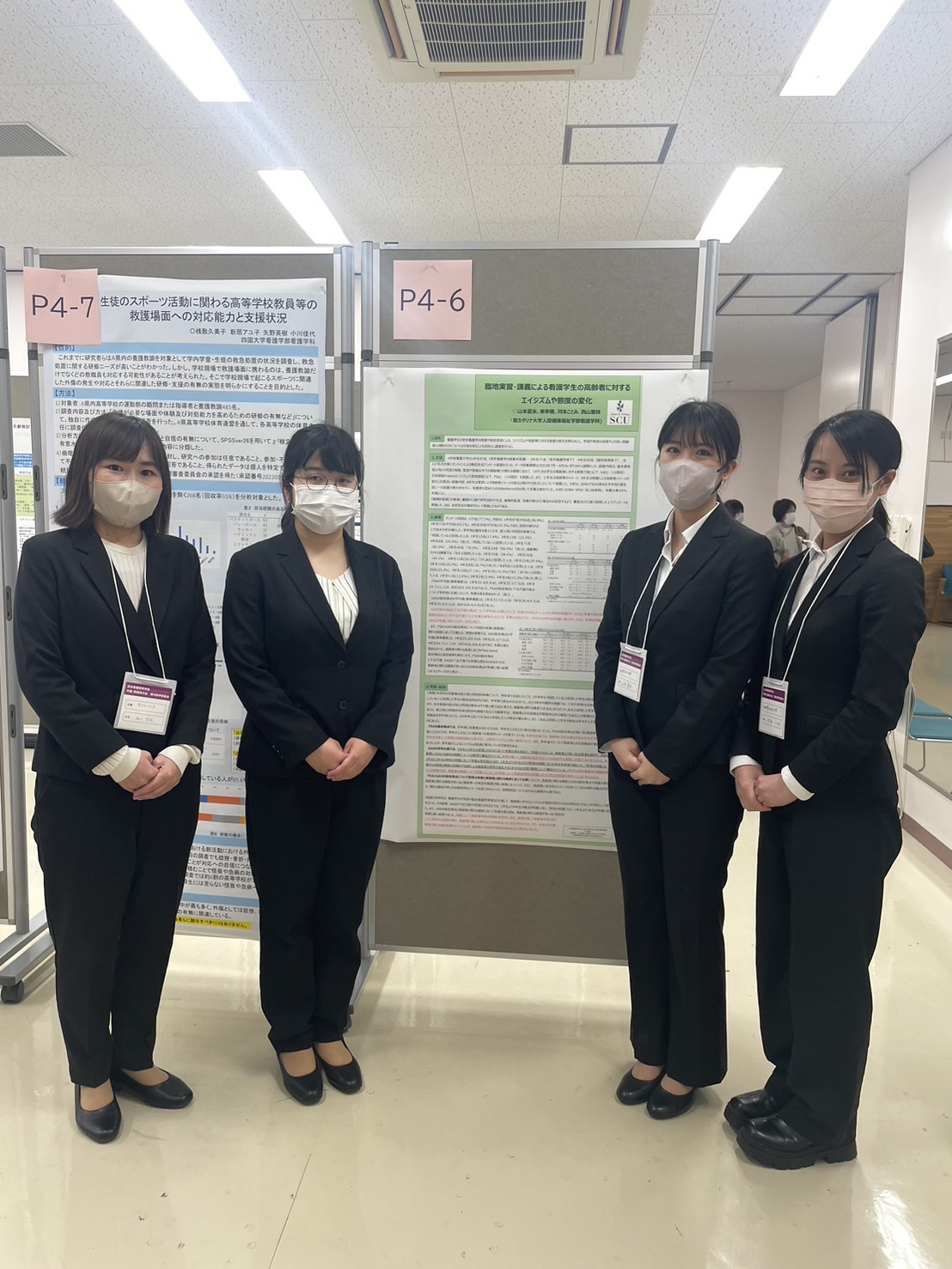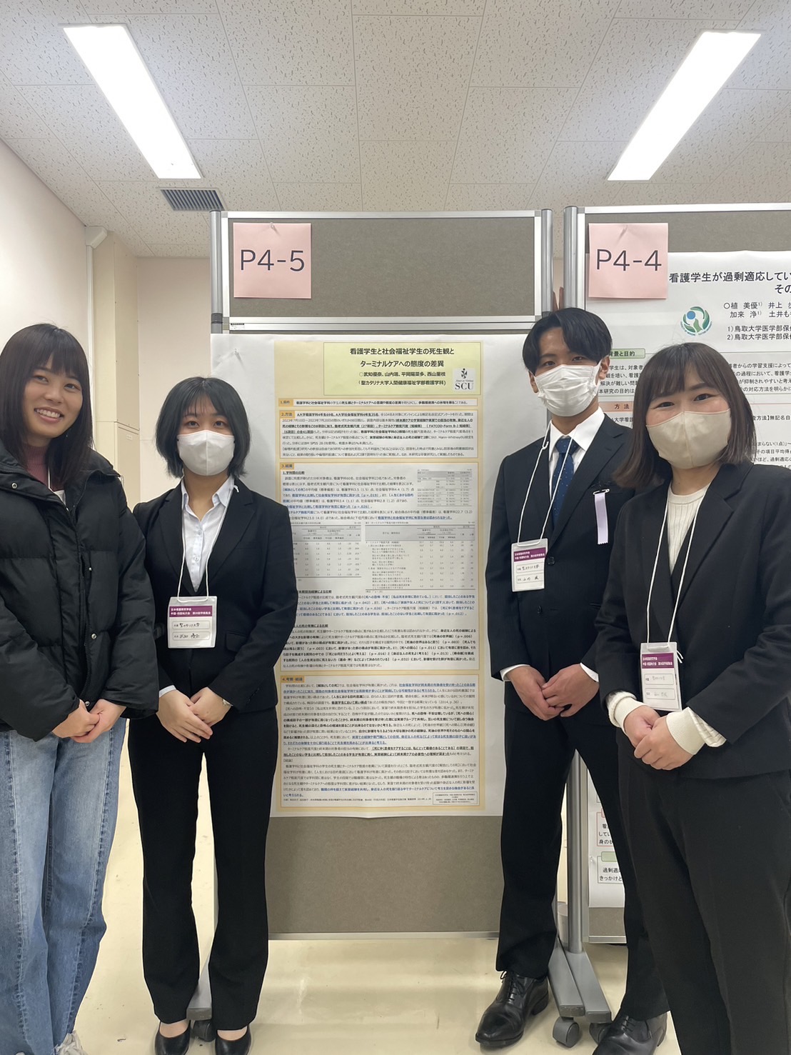 2024(令和6)年3月17日、島根大学にて開催された日本看護研究学会中国・四国地方会 第36回学術集会において、人間健康福祉学部看護学科4年生2グループ6名がポスター発表を行いました。