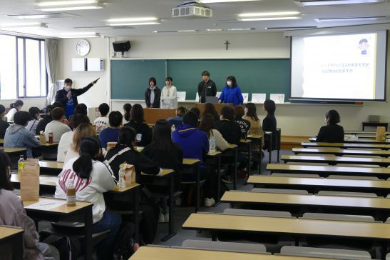 新入生を歓迎して、今年も先輩たちがスタッフとなり「社会福祉学科 カタリナウェルカムキャンパス」を開催しました。はじめは緊張していた新入生たちも、次第にリラックスした表情になり笑い声の絶えない空間になりました。ひとつ目のプログラム「先生紹介コーナー」では、アドバイザーごとにグループに分かれ、さっそく新入生がインタビュアーとなり、先生たちの魅力を引き出す質問を繰り広げました。その後、グループごとにプレゼンテーションを行いました。次に「先輩(先生)への質問コーナー」では、新入生たちは先輩や先生たちからのリアルなコメントでこれから始まる学生生活への不安や疑問を解消しました。最後のプログラムでは、「4年後の自分自身の目指す姿」をイメージし、画用紙に書き込み、満開を迎えた桜の木の下や学内のお気に入りの場所で撮影を行いました。終了時には、新入生からは笑顔とともに「参加できて良かった」「楽しかった」という声が聞かれ、企画・運営した学生スタッフにとっても、本当に楽しく嬉しい時間となりました。新入生の皆さん ようこそ社会福祉学科へ これから社会福祉学科で わたしたちと一緒に楽しく学んでいきましょうね.