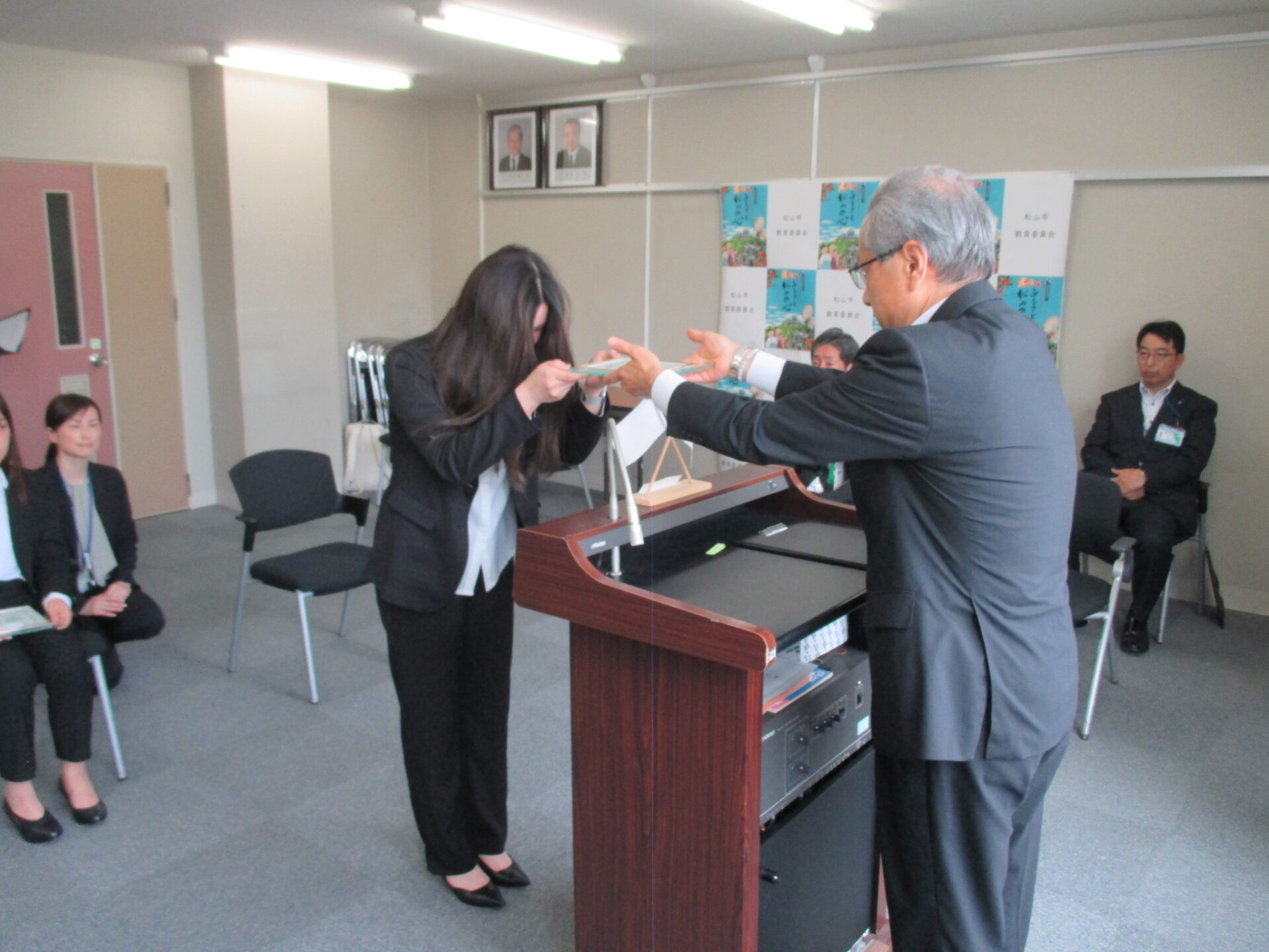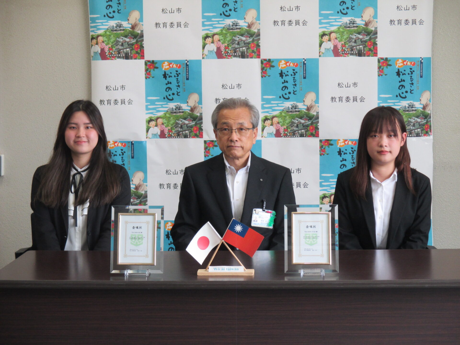 5月24日(金)、本学の台湾人留学生TSAI MING HSIさん(社会福祉学科)とTSAI HSING YUAN(人間社会学科)さんが、 「台北市との小中学校友好交流推進員」に任命され、委嘱式に参加しました。 台湾の文化を紹介し、日台交流と理解に努力してまいりますので、応援のほどよろしくお願いいたします。