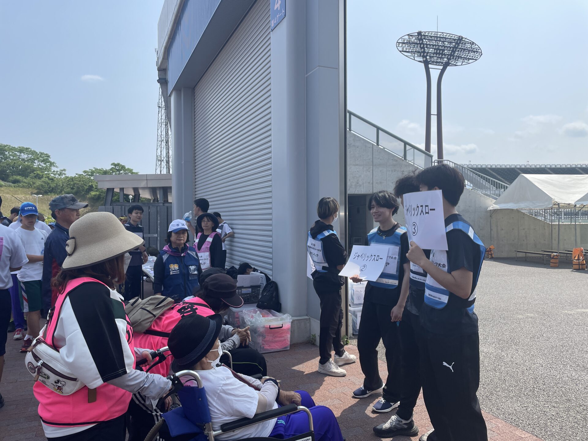 学生たちは「召集」「誘導」「運搬」の役を担い、それぞれの部署において障がいのある選手との交流を図りながら、選手が実力発揮することができるようサポートする様子が見受けられました。