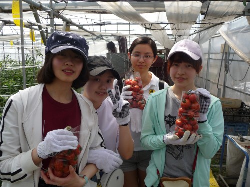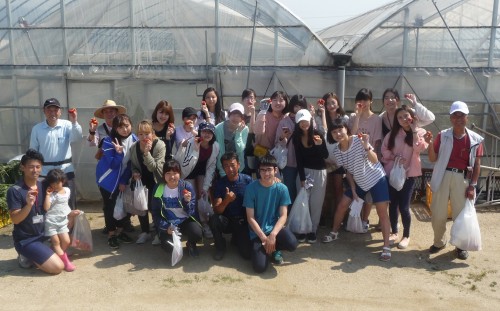 6月3日(土)、松山市北条にある風早山本農園さんで行われた『トマト収穫体験』に、台湾の留学生18名が参加しました。ハウス内に実ったトマトを自分たちで収穫したり、採れたての新鮮なトマトを味わうなど貴重な農業体験をさせていただきました。