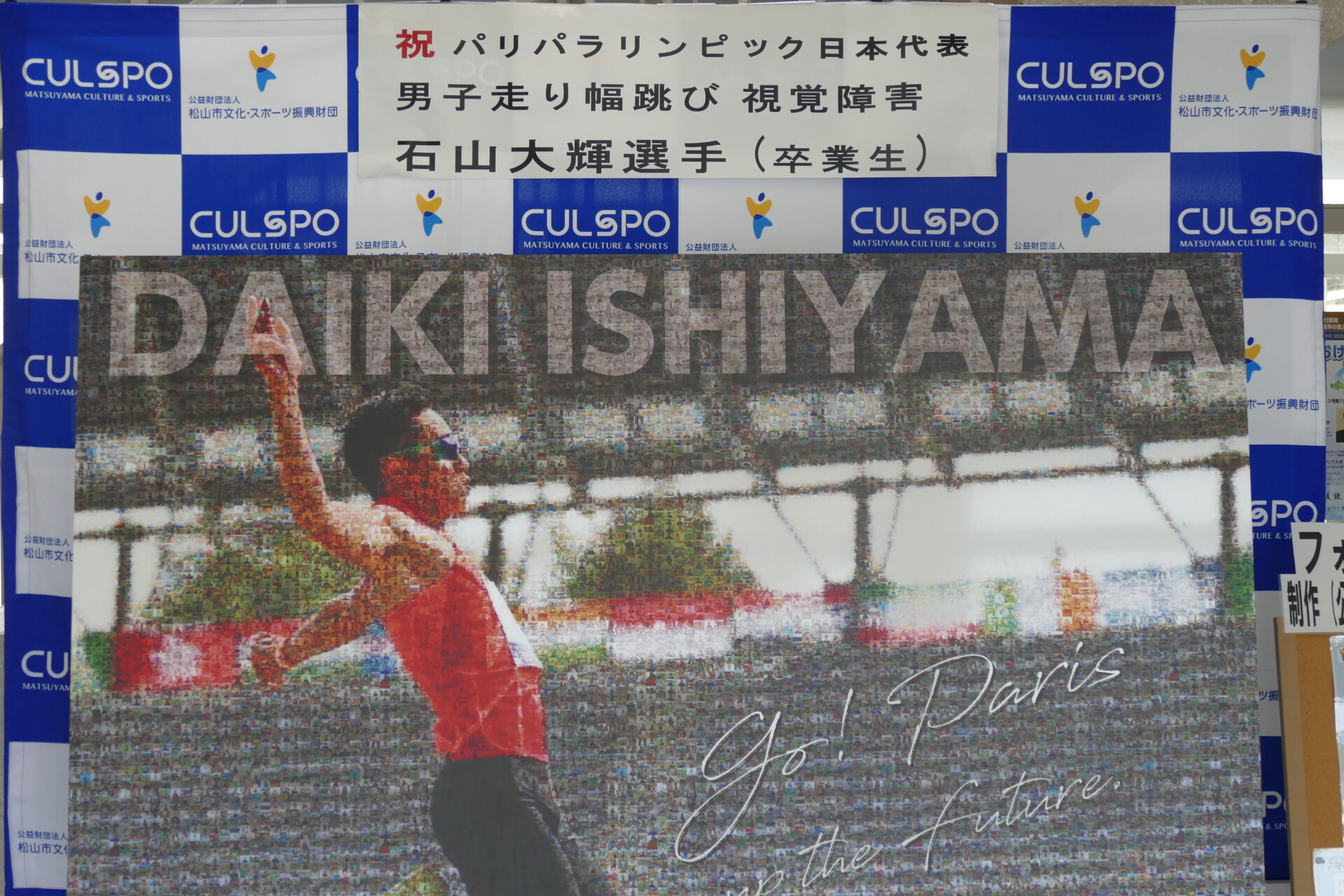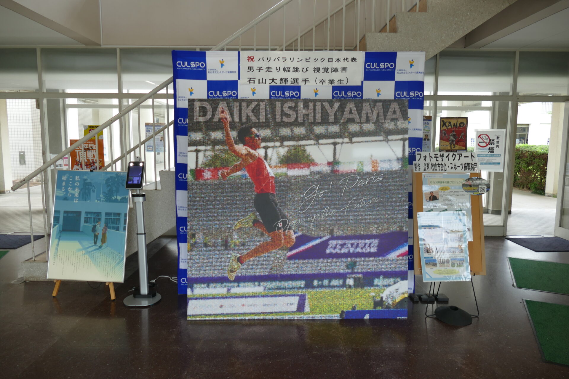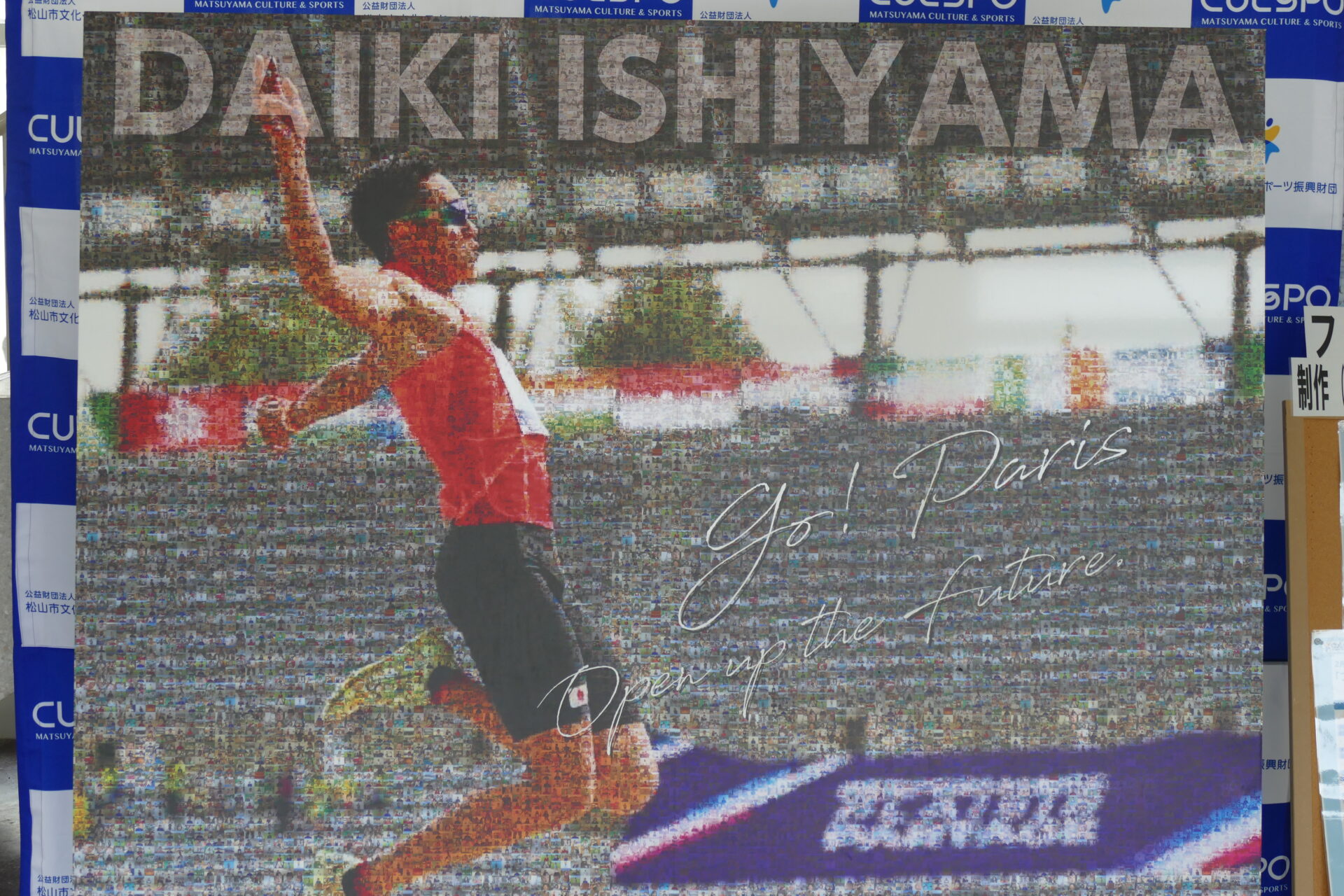 また、本学と連携協定を締結している公益財団法人松山市文化・スポーツ振興財団と協力の上、石山選手を応援するためにクラウドファンディングにて支援を募り、同選手をモチーフとしたフォトモザイクアートを制作しました。