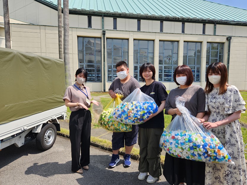 6月19日(水)、北条キャンパスと松山市駅キャンパスで回収した約17kgのペットボトルキャップを、松山市社会福祉協議会にお渡ししました。