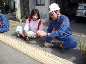 翌日4日(木)は、大しめ縄張り替え体験に、韓国と台湾の留学生5名が参加しました。実際に大しめ縄作りに参加し、北条地区の貴重な文化体験をさせていただきました。