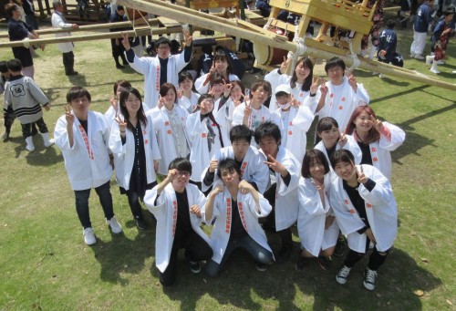 5月3日(水)、北条鹿島まつりにボランティアセンターの26名の学生と4名の台湾人留学生が参加しました。土手内地区の子どもだんじりをかき、だんじり練りの体験をさせていただきました。