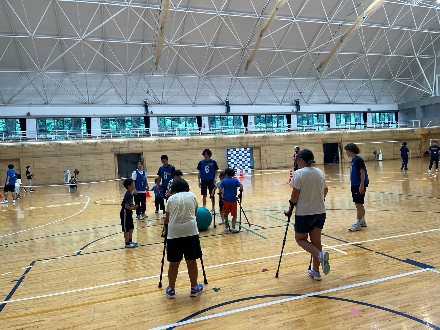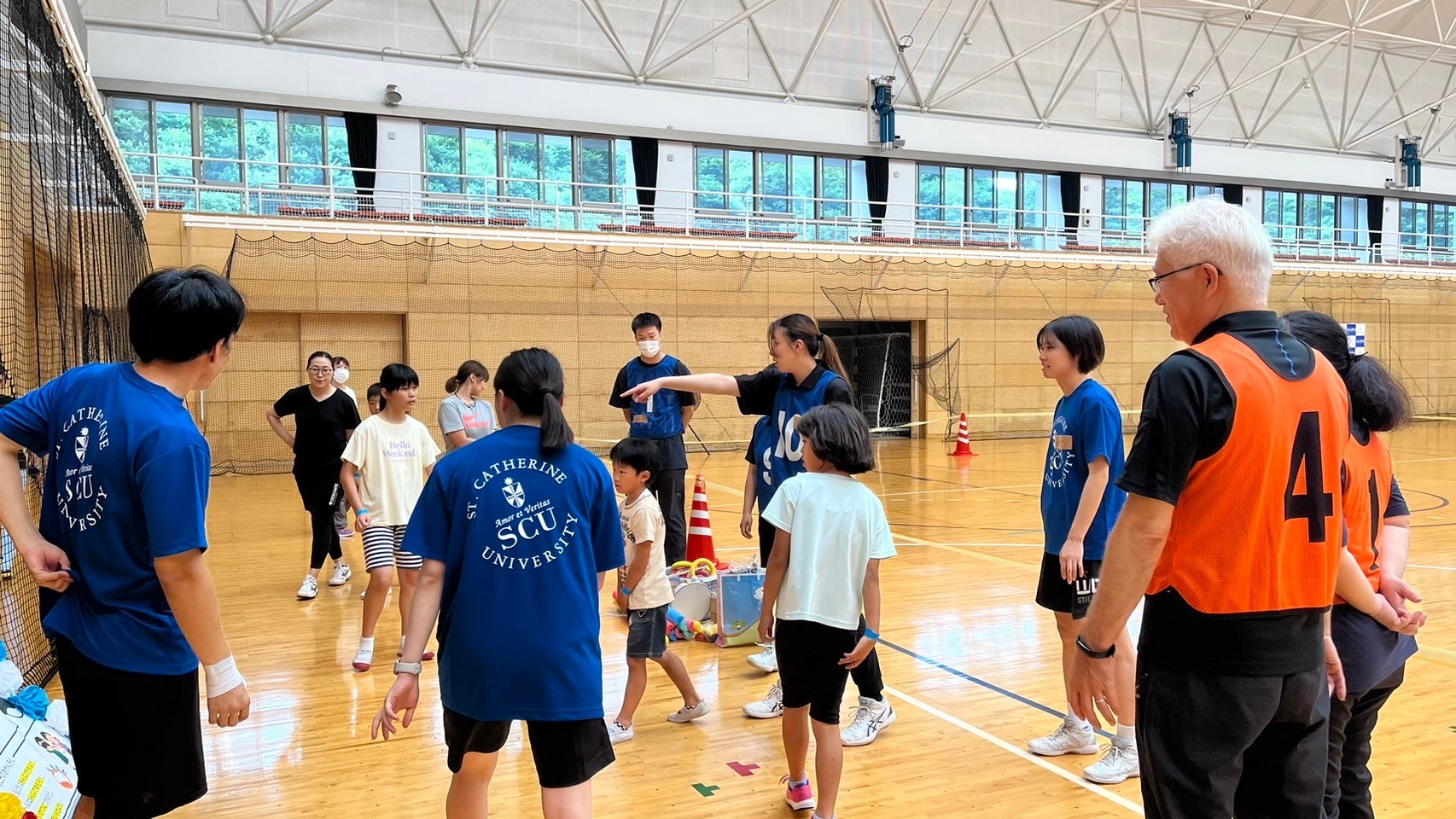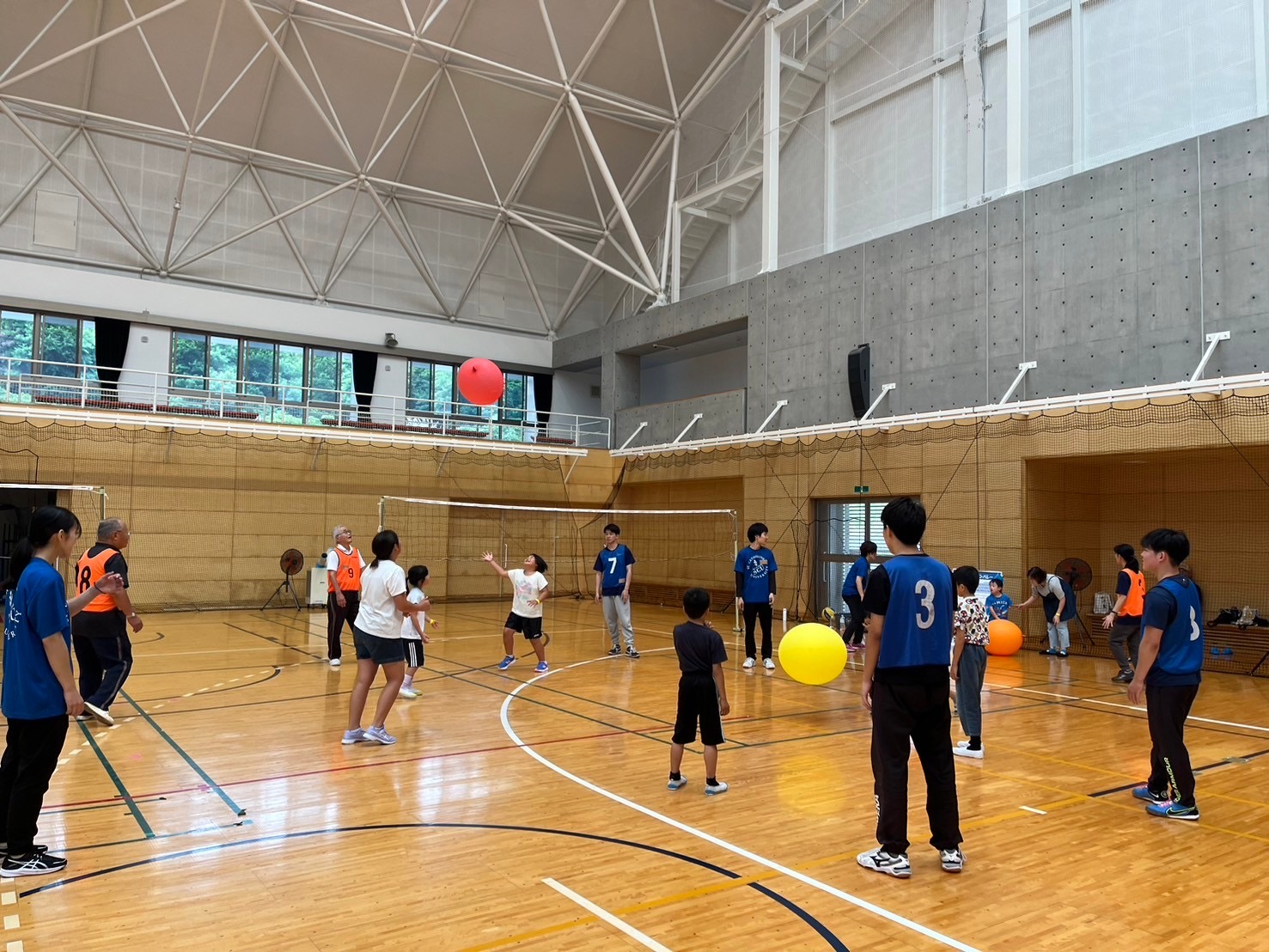 7月13日(土)に北条スポーツセンター体育館において、松山市文化スポーツ振興財団と本学の連携事業として、『工夫』で楽しむスポーツ体験会(アダプテッド・スポーツ体験教室)が開催されました。アダプテッド・スポーツとは、性別や年齢、体力や運動能力に関わらず、誰もが参加できるようスポーツのルールや用具を工夫し、する人に適合(adapt)させたスポーツのことです。