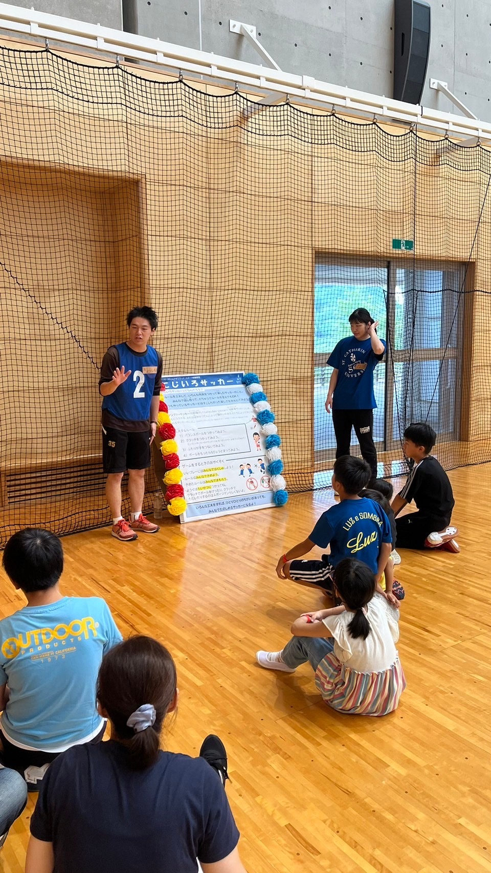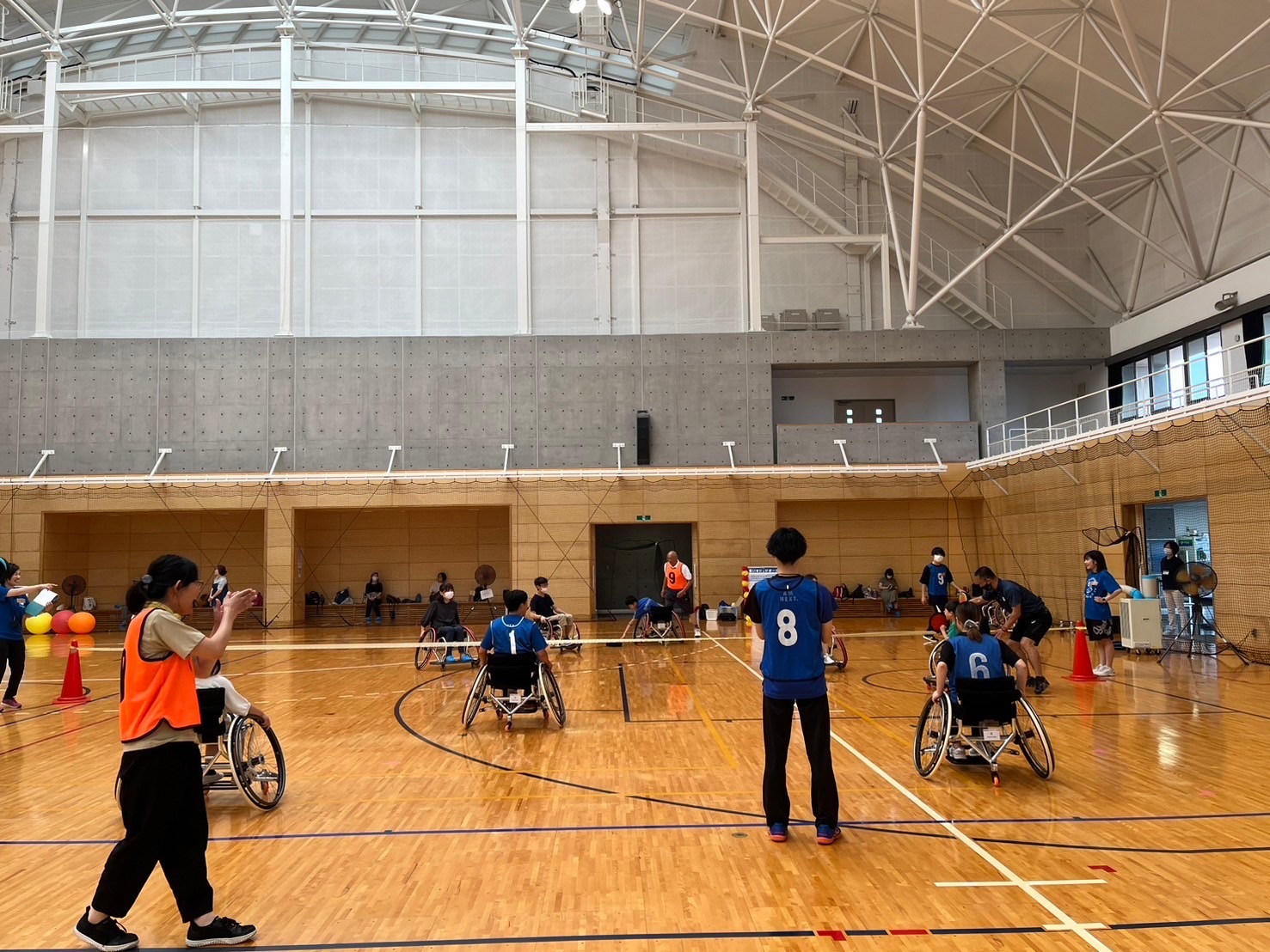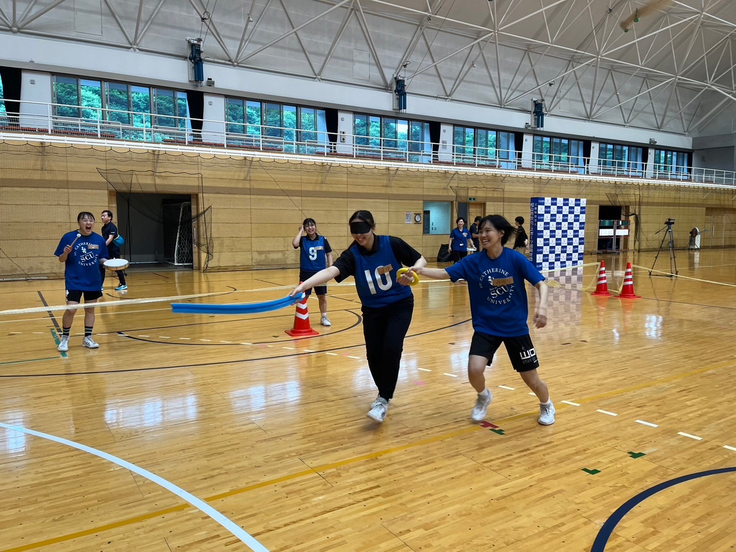 7月13日(土)に北条スポーツセンター体育館において、松山市文化スポーツ振興財団と本学の連携事業として、『工夫』で楽しむスポーツ体験会(アダプテッド・スポーツ体験教室)が開催されました。アダプテッド・スポーツとは、性別や年齢、体力や運動能力に関わらず、誰もが参加できるようスポーツのルールや用具を工夫し、する人に適合(adapt)させたスポーツのことです。