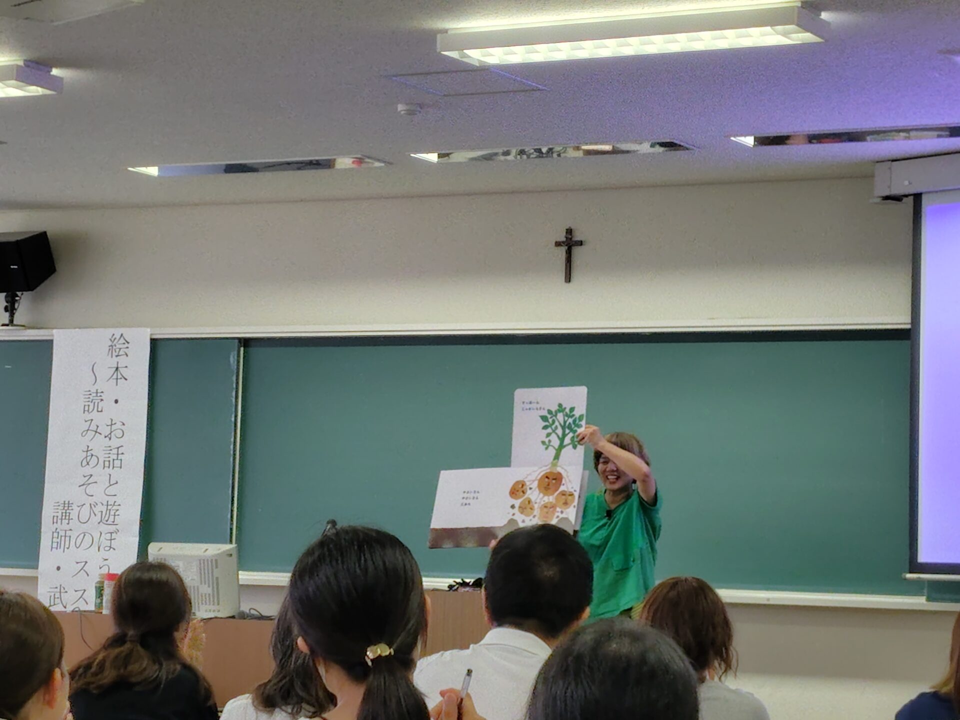 8月20日(火)第24回、保育学科公開講座リカレントセミナーが開催されました。本学の卒業生、保育現場や児童福祉施設等で働かれている方々を対象として、第Ⅰ部は本学教員による3つの講座、第Ⅱ部は特別講師、「おはなし屋えっちゃん」として知られる武知悦子氏による、愉快でエネルギッシュな講座があり、全講座合わせて延べ121人の参加がありました。ご参加していただきましたみなさま、ありがとうございました。