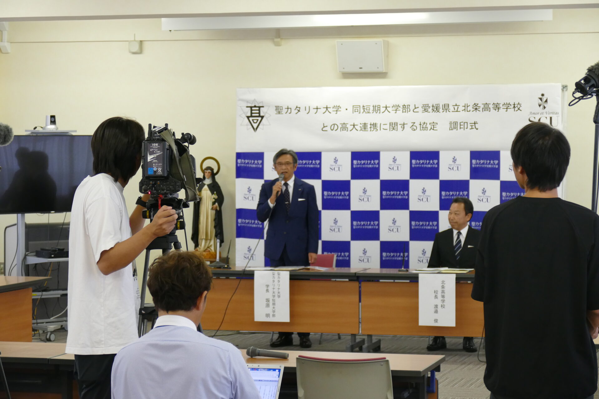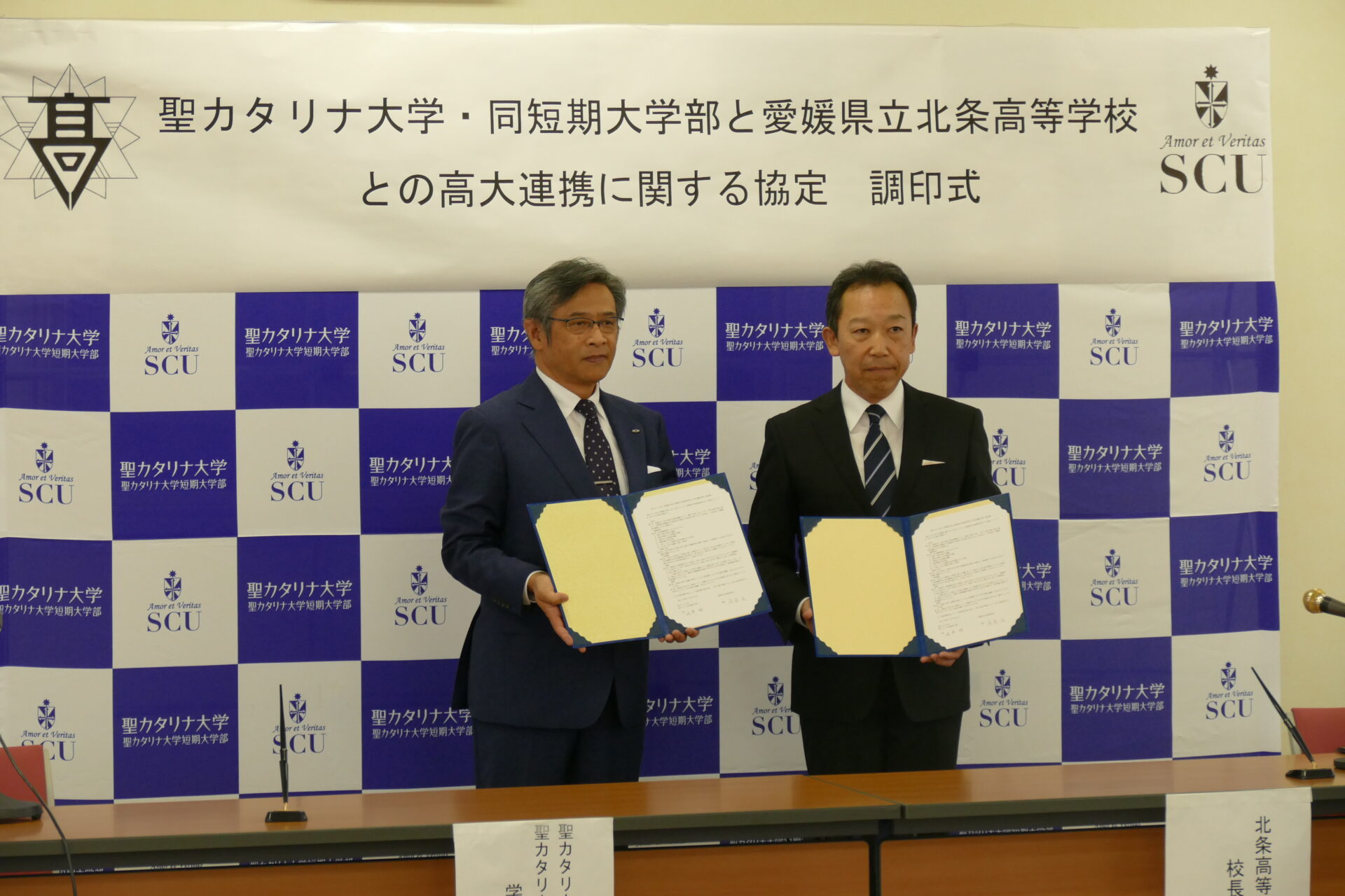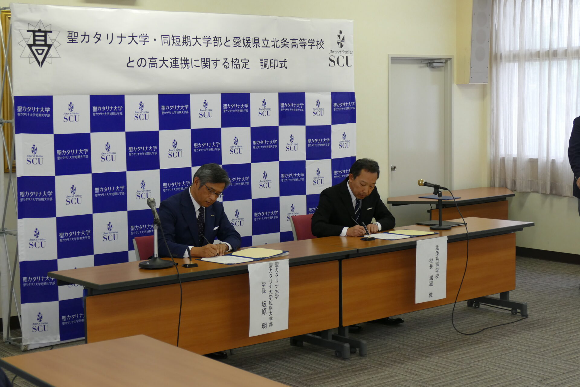 9月30日(月)、聖カタリナ大学・聖カタリナ大学短期大学部と愛媛県立北条高等学校との高大連携に関する協定 調印式が北条キャンパスで行われました。
