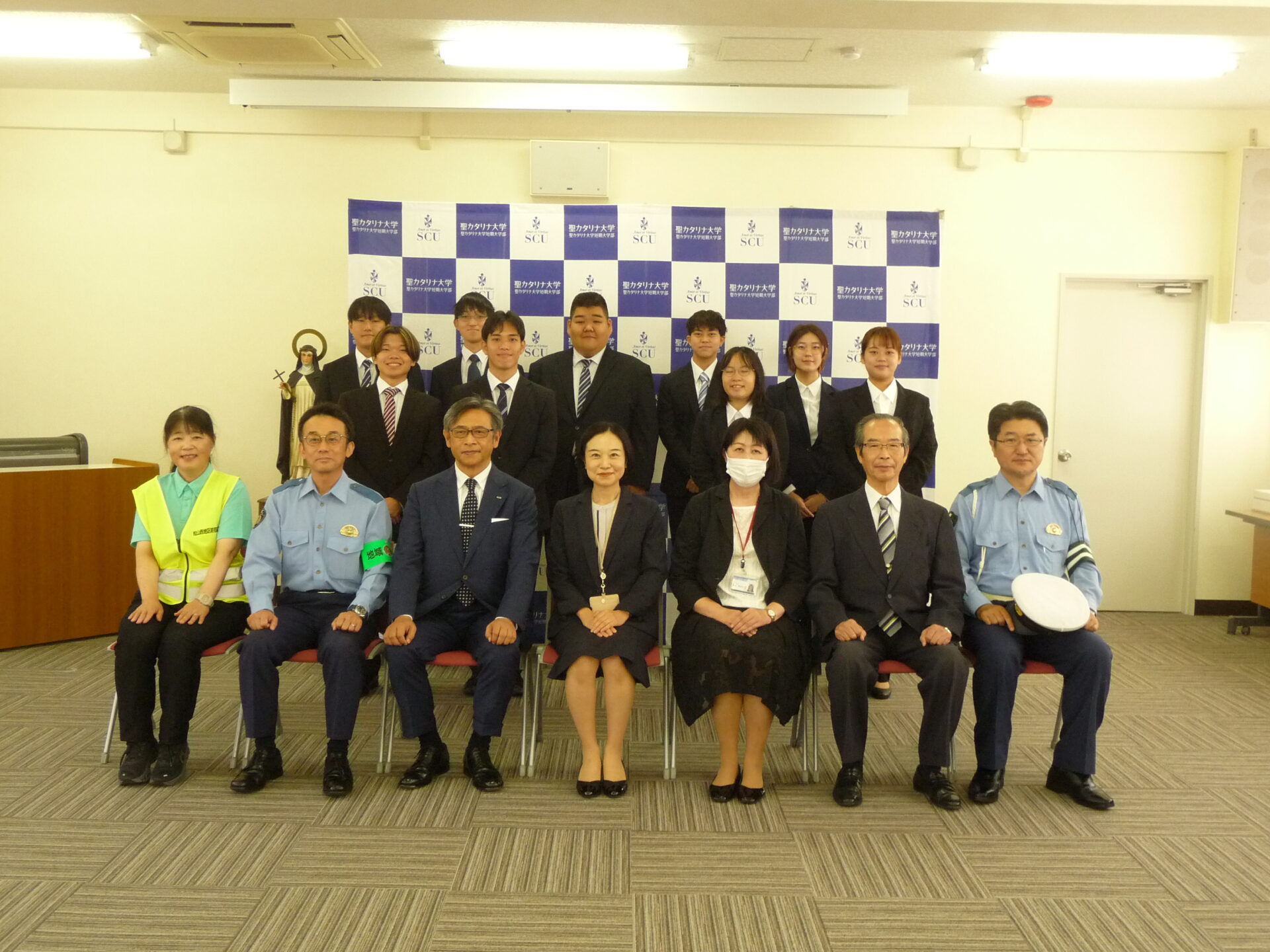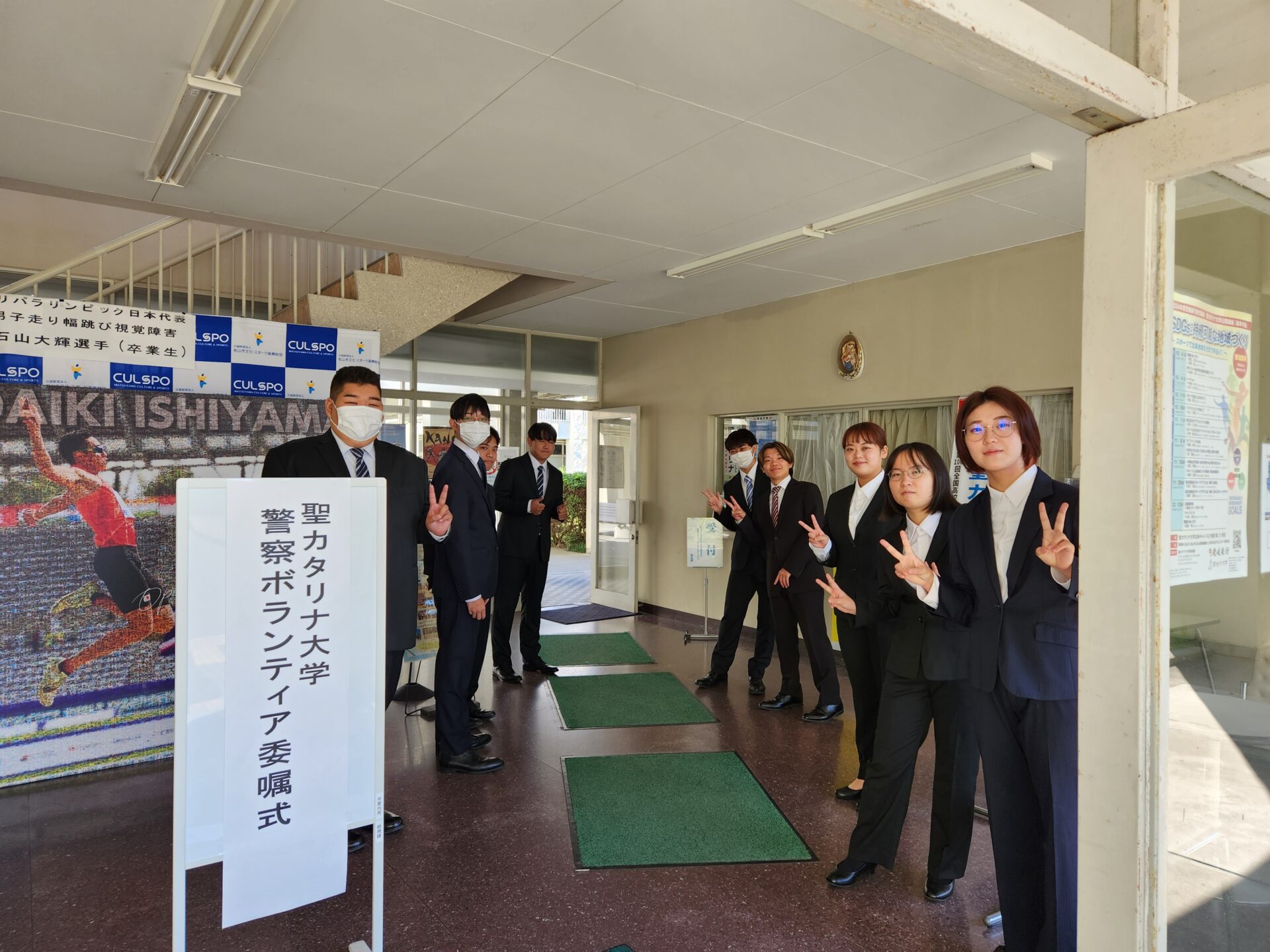 松山西警察署から「聖カタリナ大学警察ボランティア」として委嘱された学生たちが、