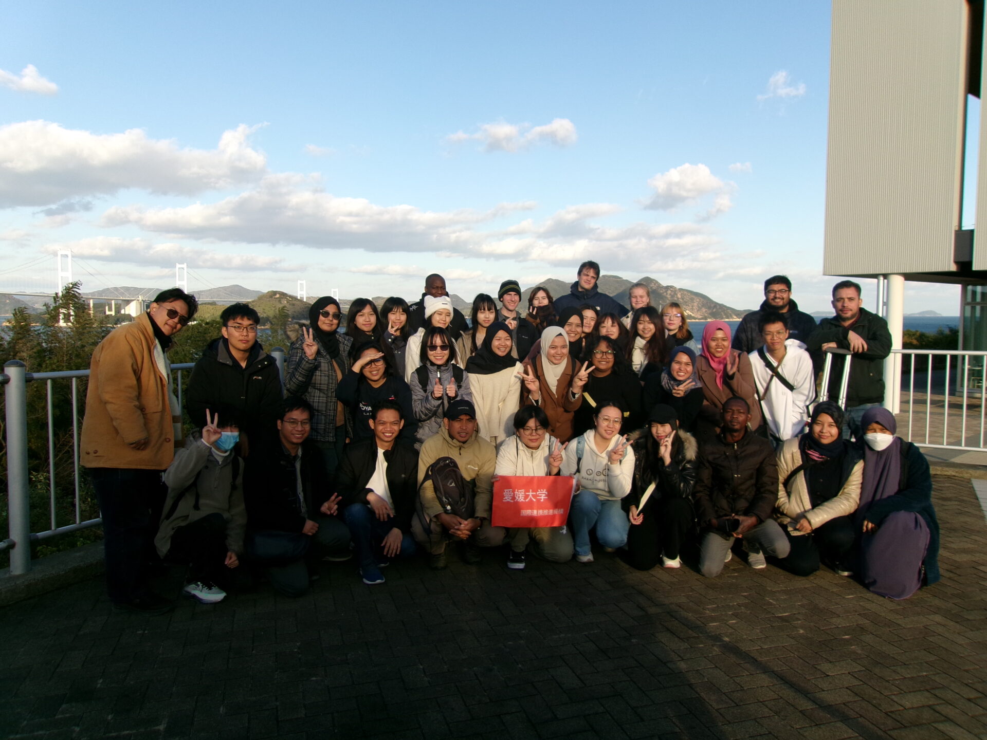 11月30日(土)に、愛媛の3大学留学生(愛媛大学、松山大学、聖カタリナ大学)で行くバスツアーが今年も実施され、本学から7名の留学生が参加しました。 大山祇神社では日本の文化、伯方の塩工場では塩ができるまでの工程を学ぶことができました。 また当日は天気も良く、しまなみ海道の景色を楽しみながら、他大学の留学生達とも交流することができました。