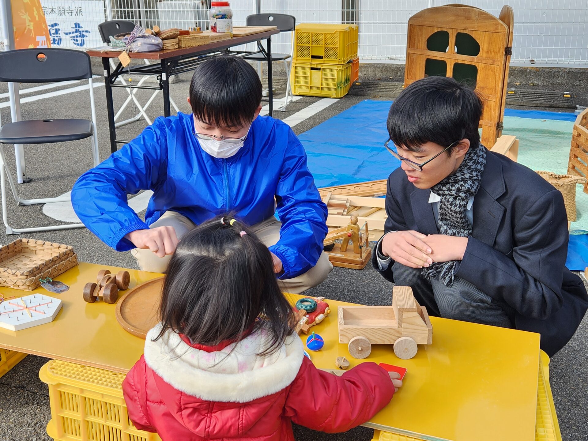 「北条の謎を探れ」では謎解き資料の配布や説明、会場案内などを、「子ども遊びコーナー」ではおもちゃで遊ぶ子どもたちの見守りや遊び方の説明を行いました。