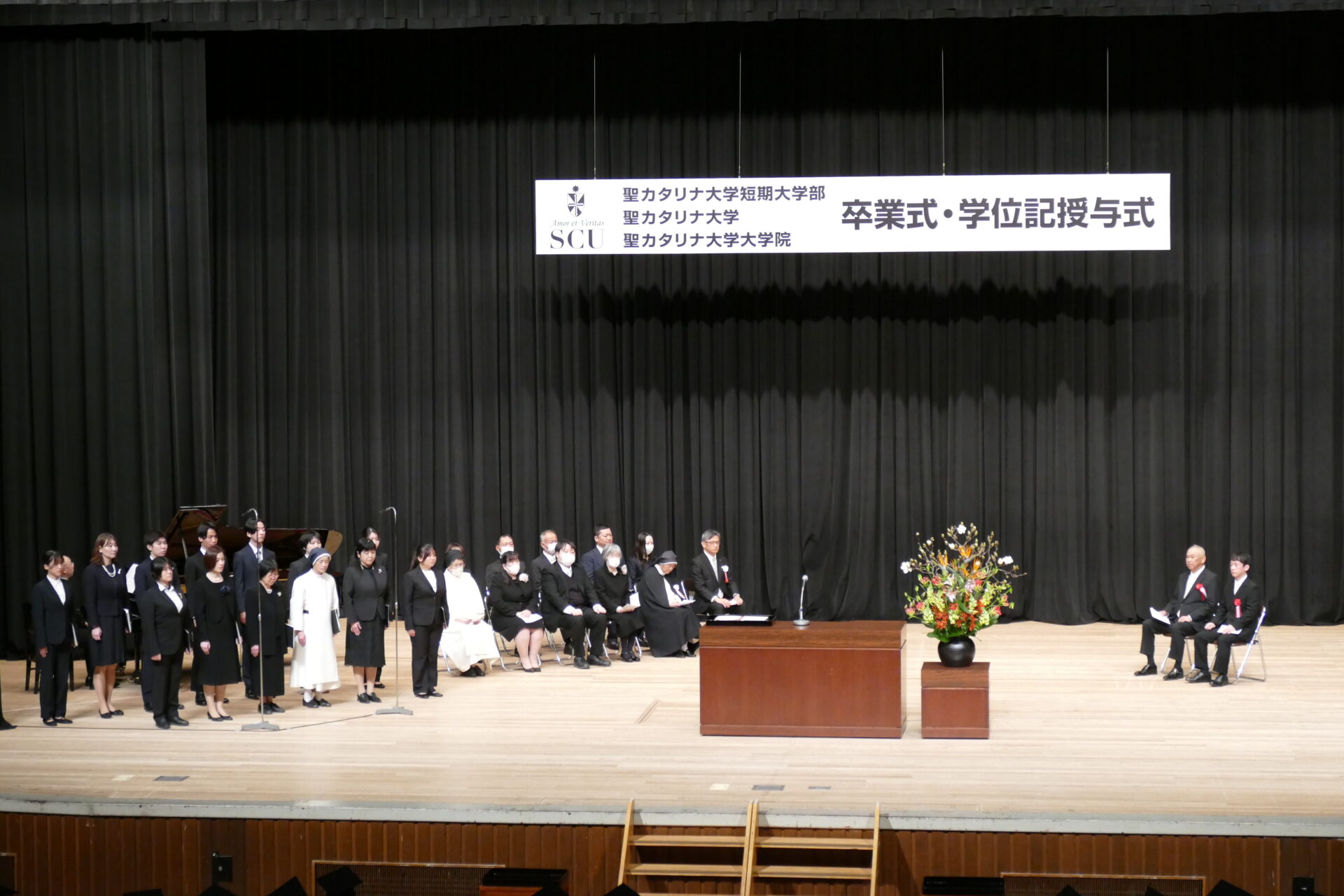 3月17日(月)、2024年度 聖カタリナ大学短期大学部、聖カタリナ大学、聖カタリナ大学大学院・卒業証書・学位記授与式を松山市民会館にて挙行しました。