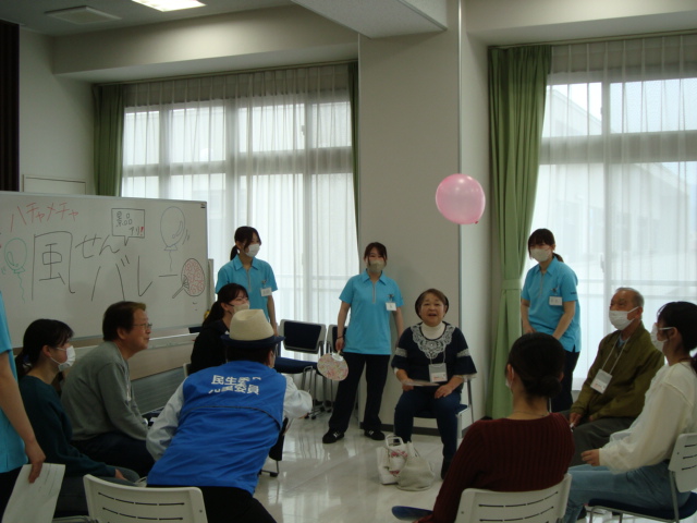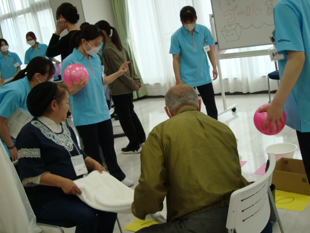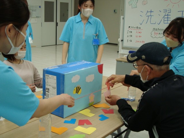 2025年4月22日(火)看護学科3年生の老年期の看護Ⅲ(技術演習)の演習として、大学周辺の町内会の65歳から90歳の24名の皆様にご協力いただき介護予防教室を開催しました。加齢的変化に合わせた身体・認知機能の維持・向上を目的とした企画を考え、自作の道具を作成し実施いたしました。参加者からは、「去年と違うレクリエーションで今年も楽しめました!」「また来年もくるね!元気でいなくっちゃ!」との評価をいただき、学生たちは地域の方々から学びを得るとともに貴重な交流機会となりました。