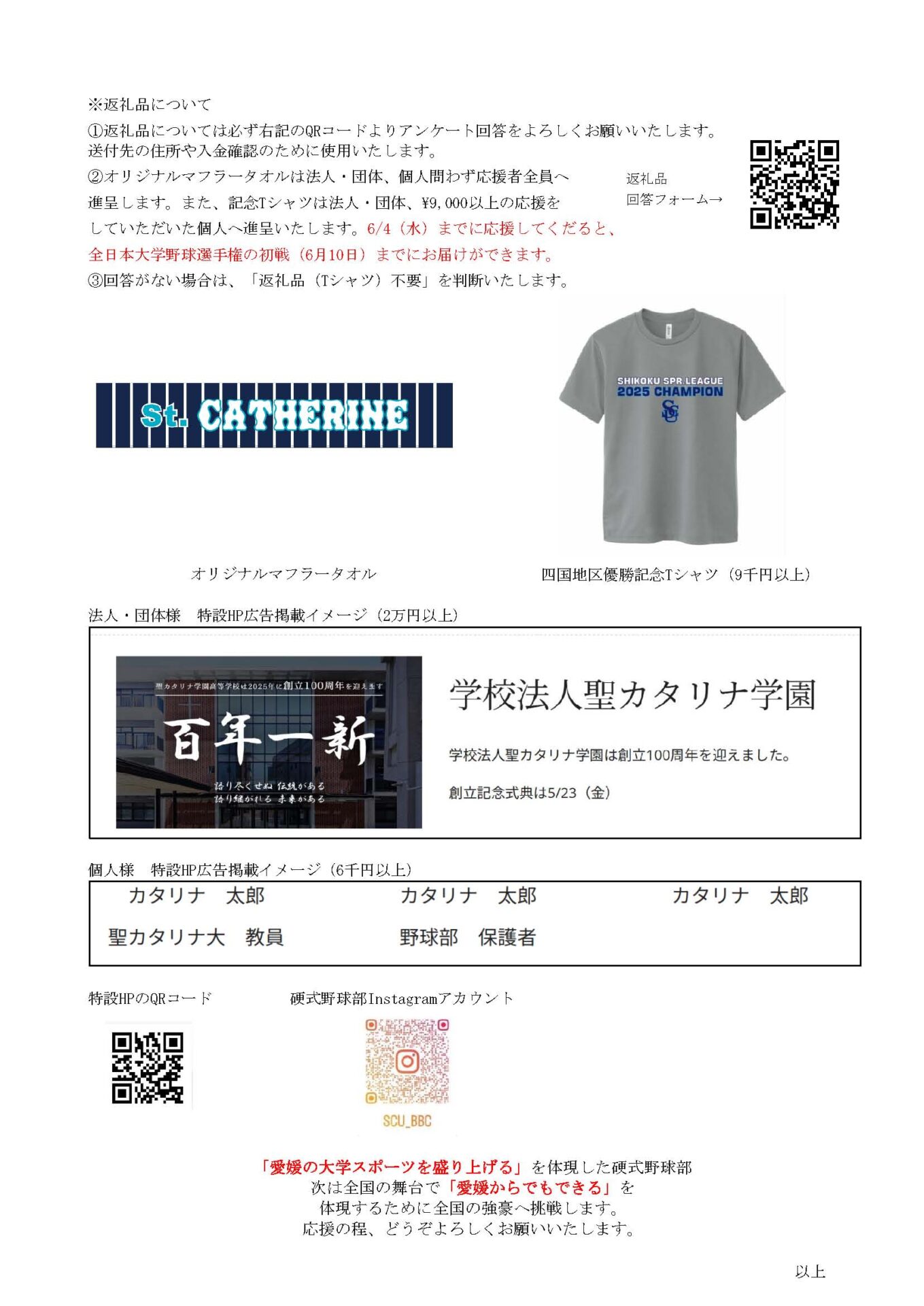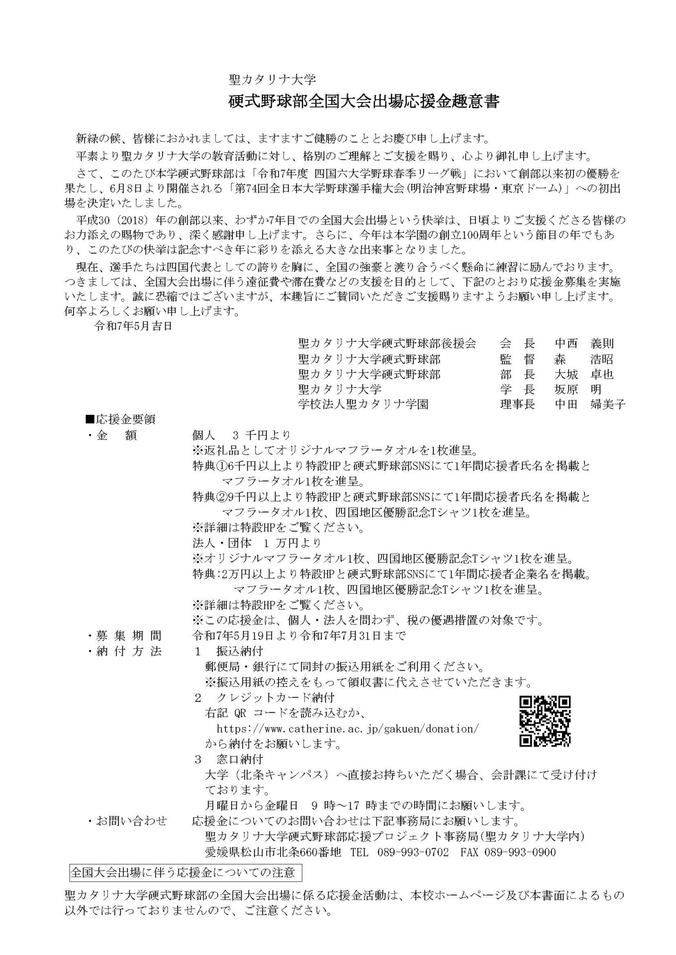 聖カタリナ大学硬式野球部の全国大会出場に係る応援金活動は、本校ホームページ及び本書面によるもの以外では行っておりませんので、ご注意ください。