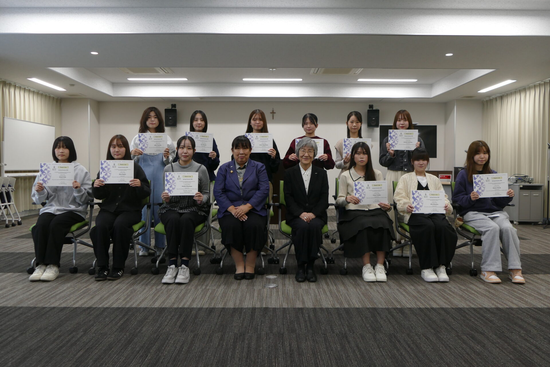 10月23日(木)12時30分から、松山市駅キャンパス第1会議室にて2025年度前学期看護学部Dean’s List(成績優秀者)表彰式が行われ、看護学科生13名が表彰されました。