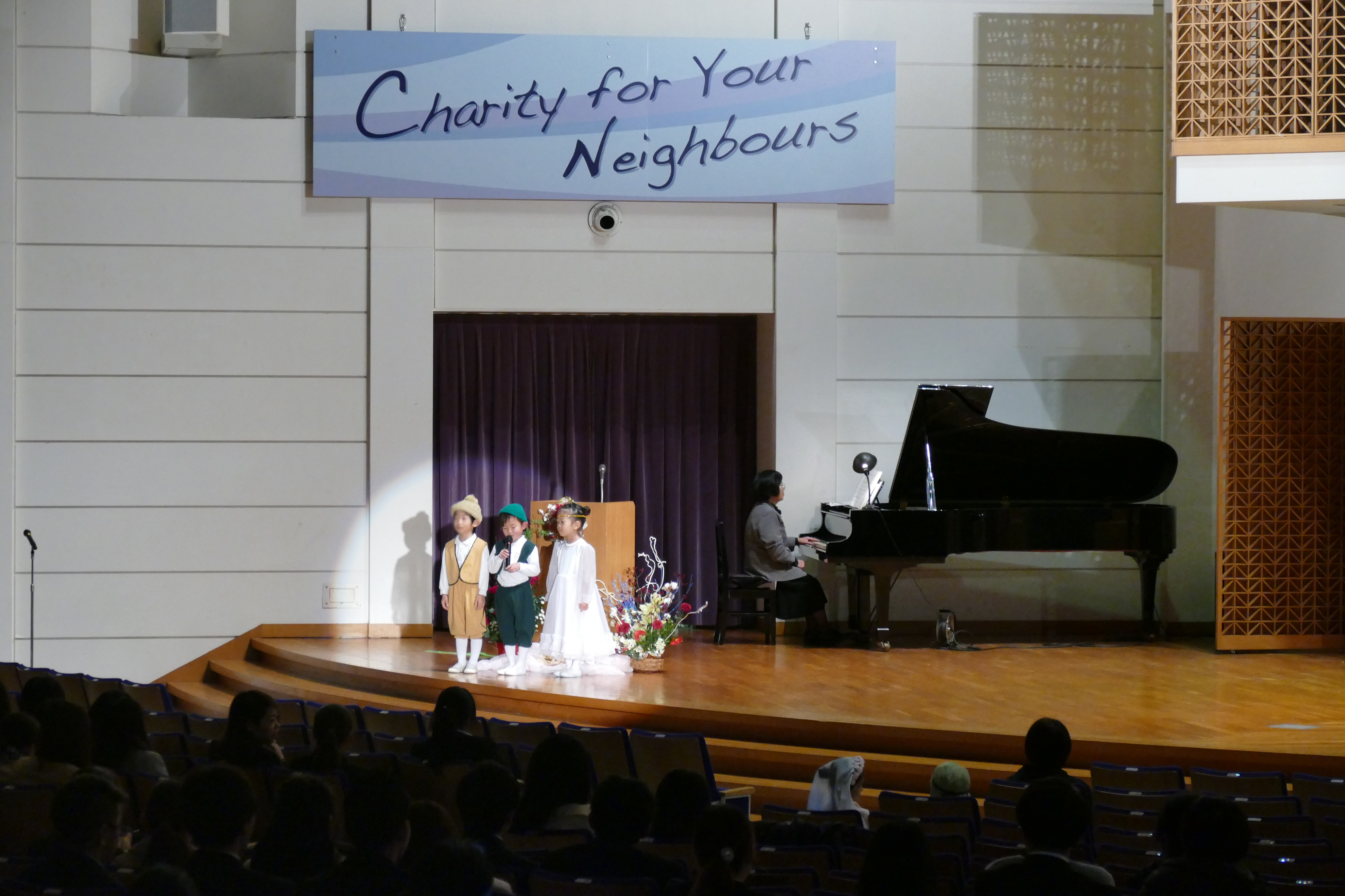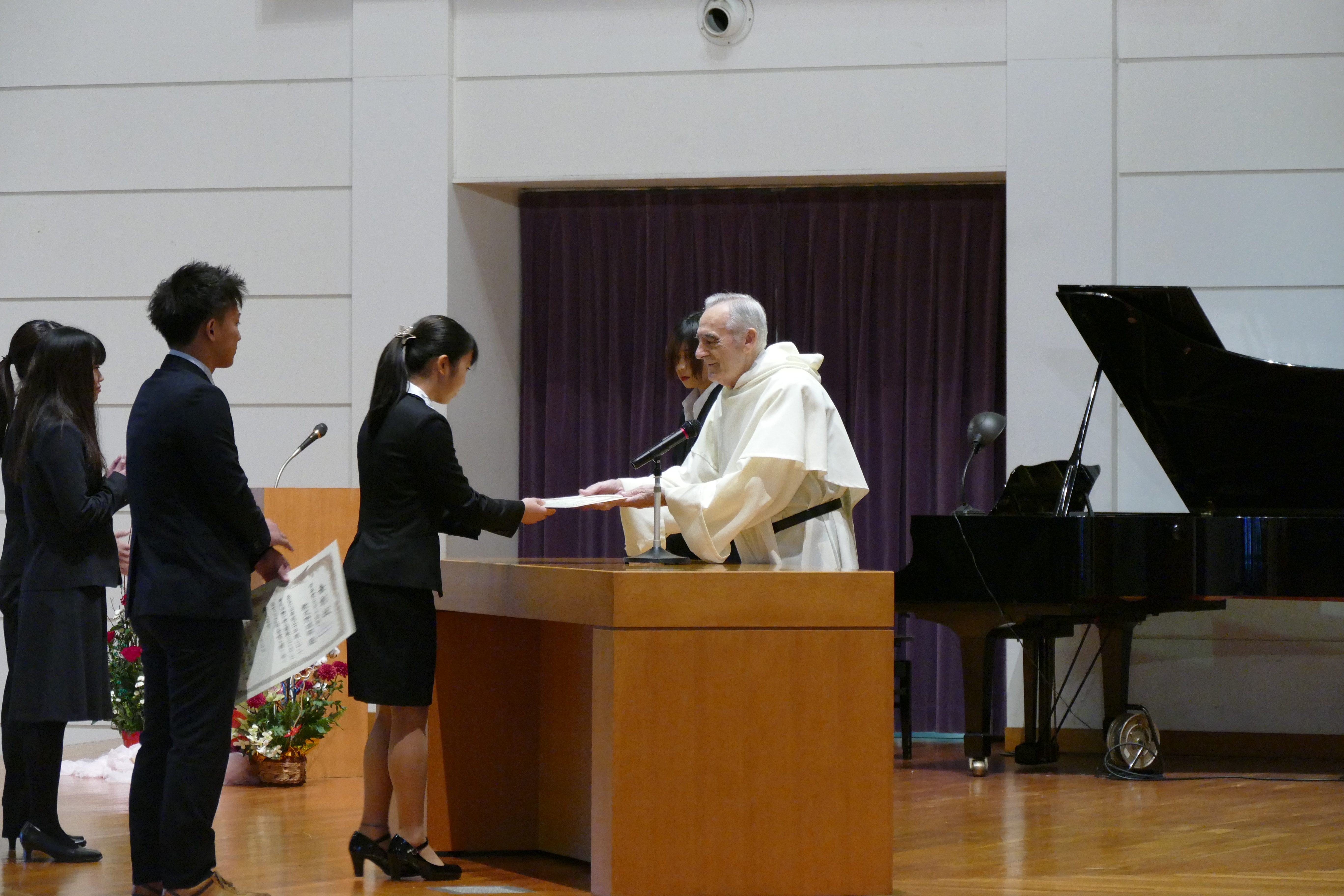 ミサ終了後、聖カタリナ大学短期大学部附属幼稚園の園児による生誕劇の発表と学長賞(今年、スポーツ・ボランティア・文化活動で活躍した学生及び団体)の授与が行われました。