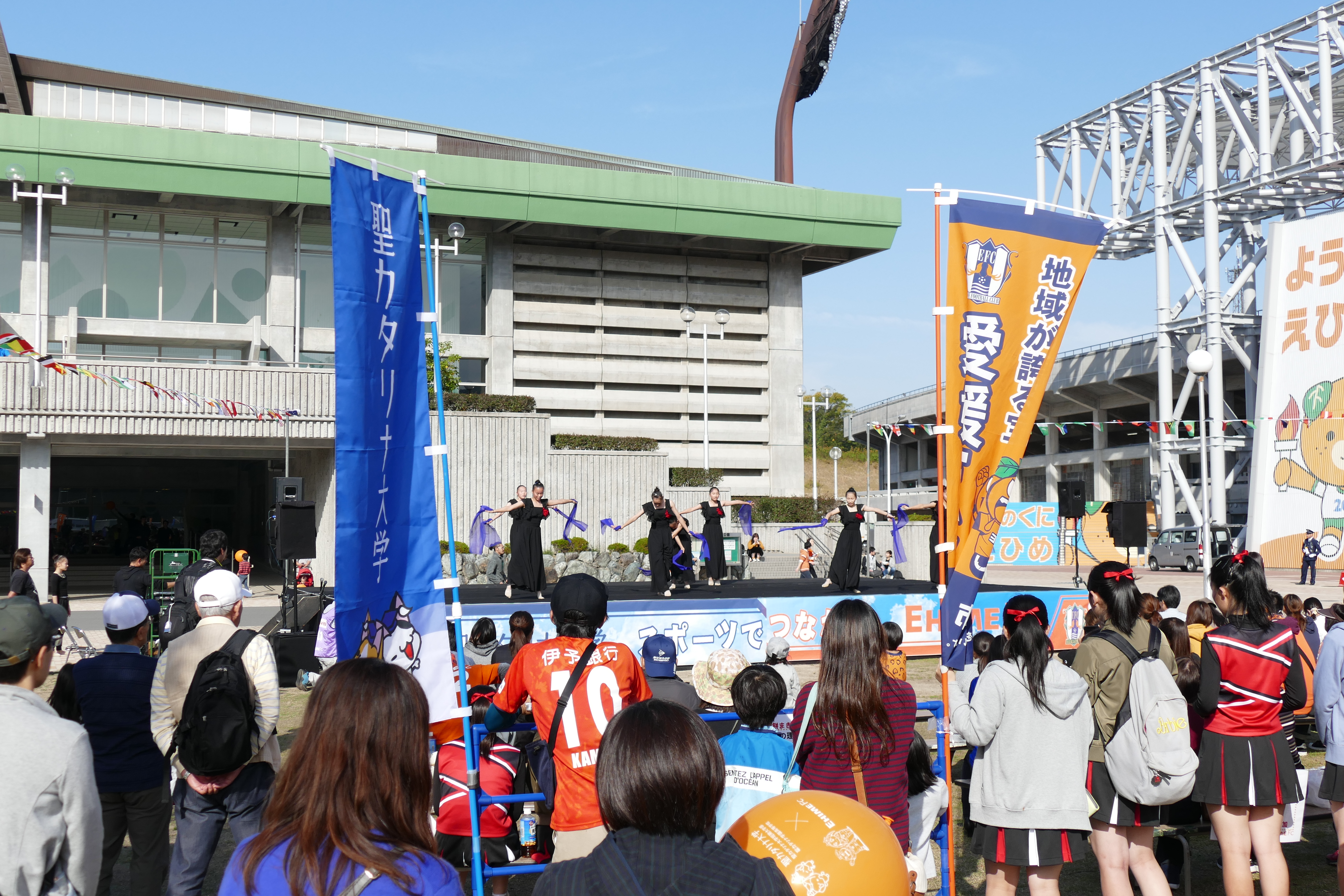 11月11日(日)、ニンジニアスタジアムで開催された「愛媛FC 2018最終戦ファイナルマッチSPECIAL DAY」で『聖カタリナ学園イベント』(ブース出店・ステージショー)を実施しました。