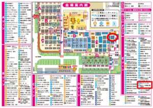 本学ブースの出店場所は、右下のレイアウト図にてご確認ください。