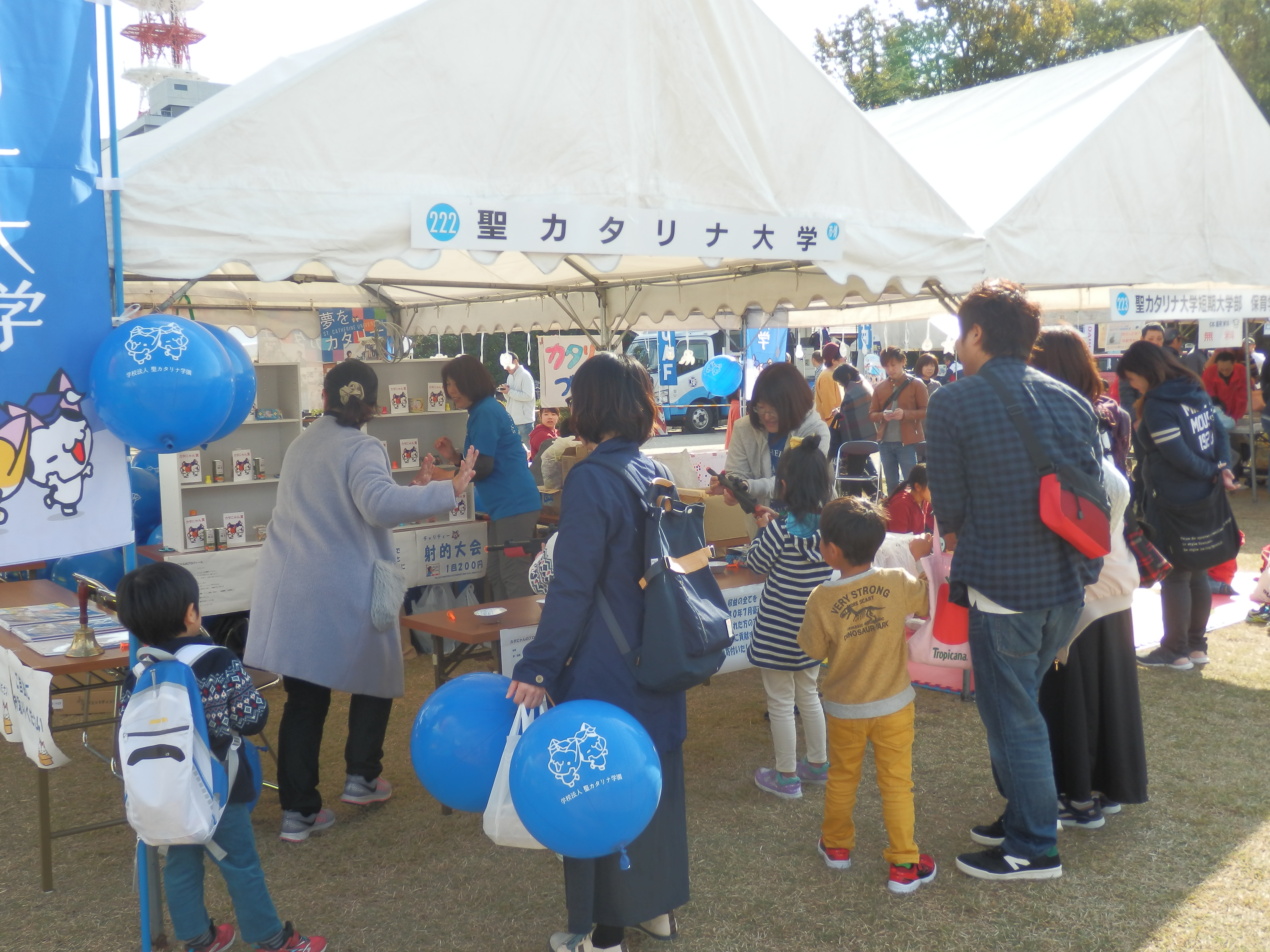 11月24日(土)、25日(日)に松山市堀之内公園で開催されたすごいもの博2018(主催:愛媛県・松山市)に平成30年7月西日本豪雨で被災された方の復興を支援するため聖カタリナ大学・聖カタリナ大学短期大学部のブースを出店しました。