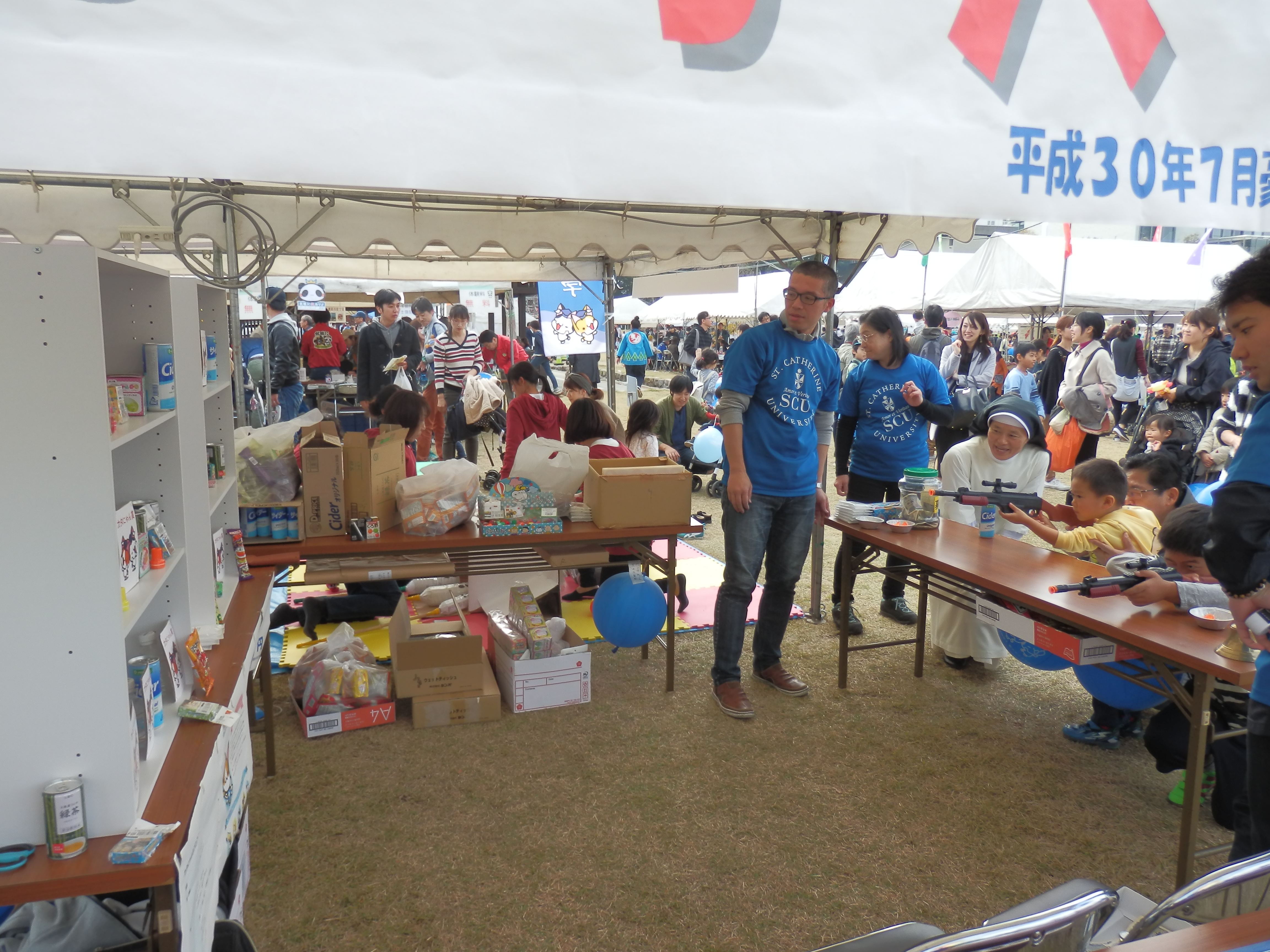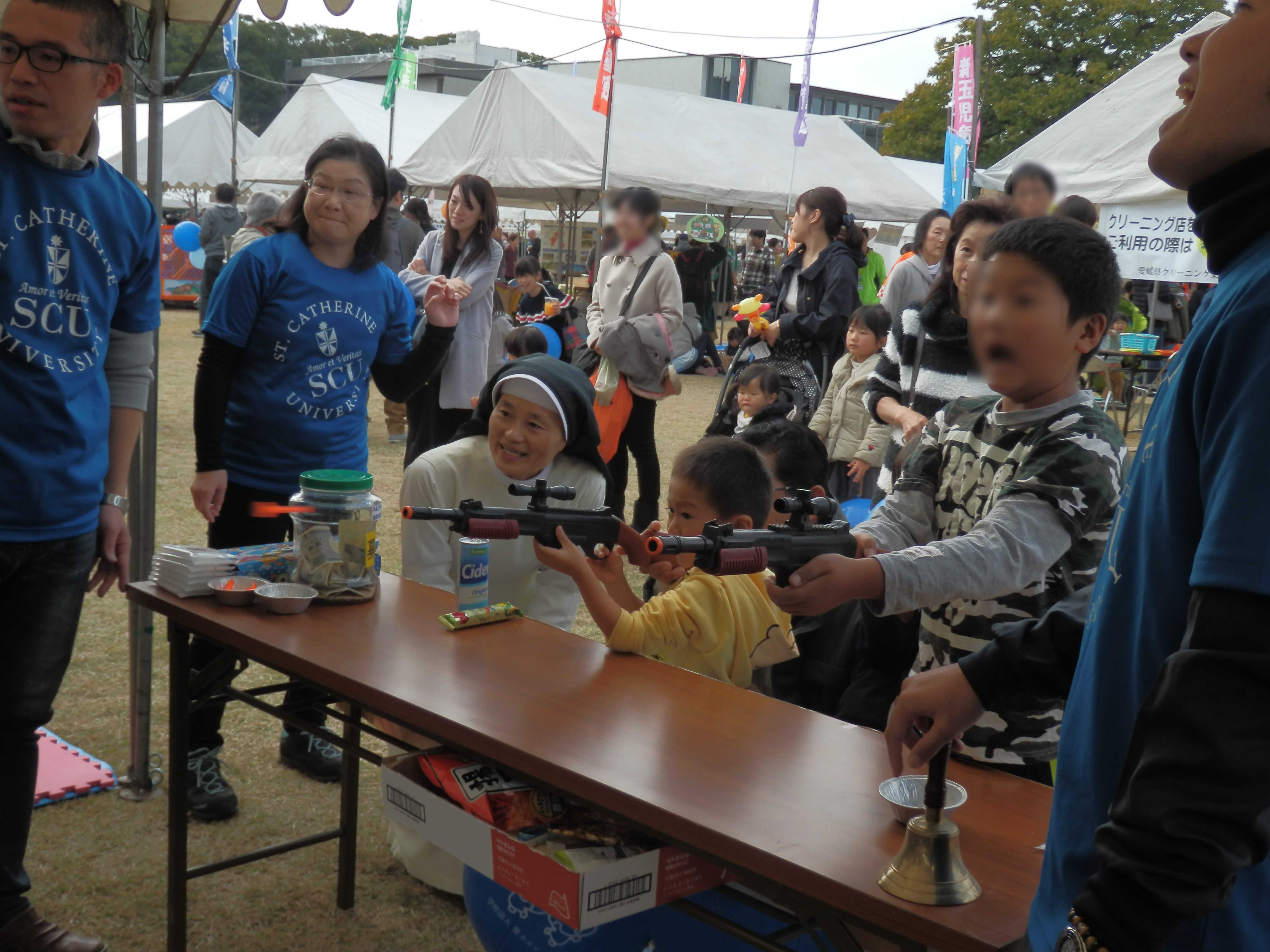 当日は、聖カタリナ大学ではチャリティ射的大会(1回200円)、聖カタリナ大学短期大学部では子どもの遊びコーナー(無料)を実施し、合計2500名以上の方に楽しんでいただきました。