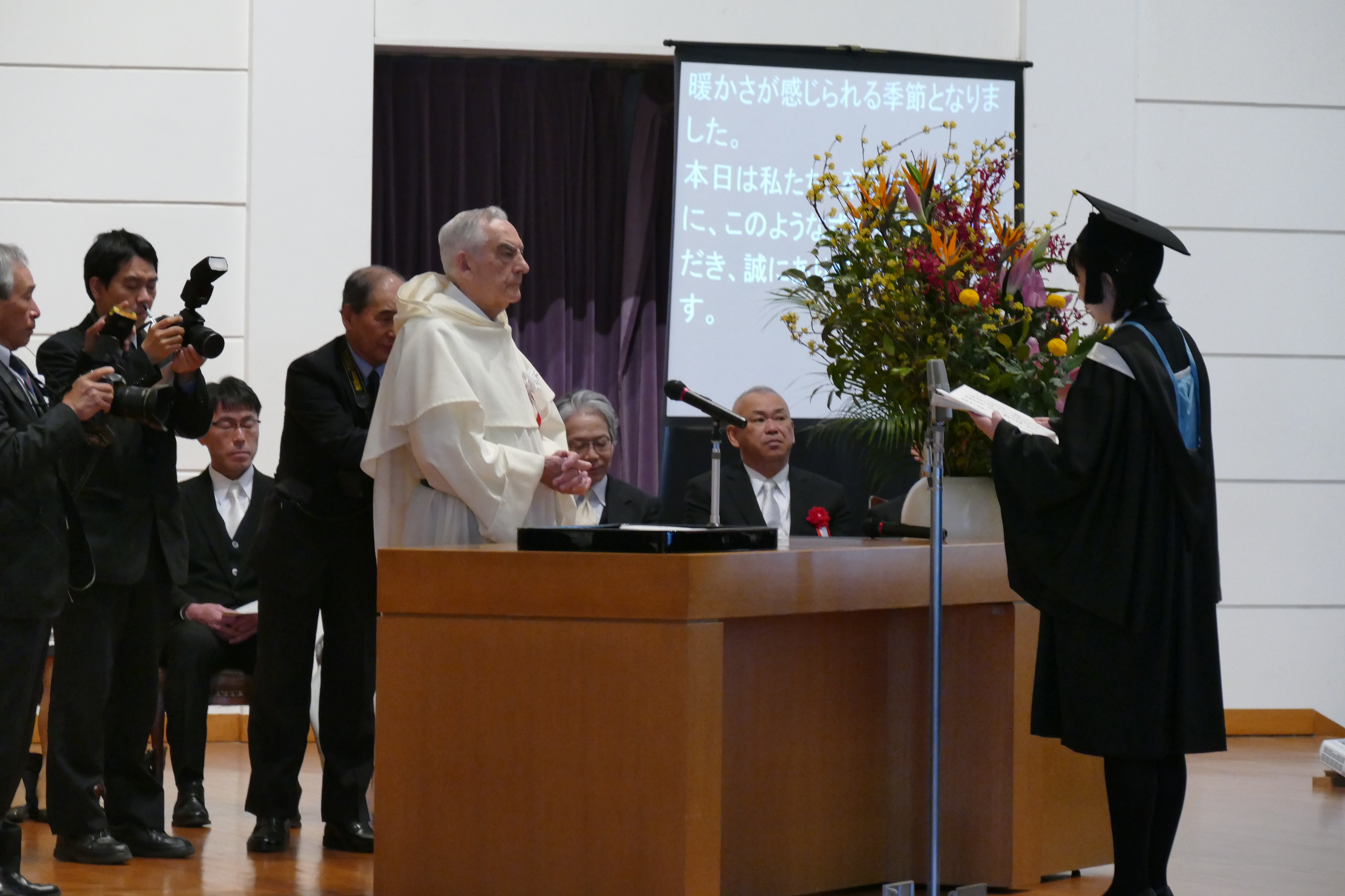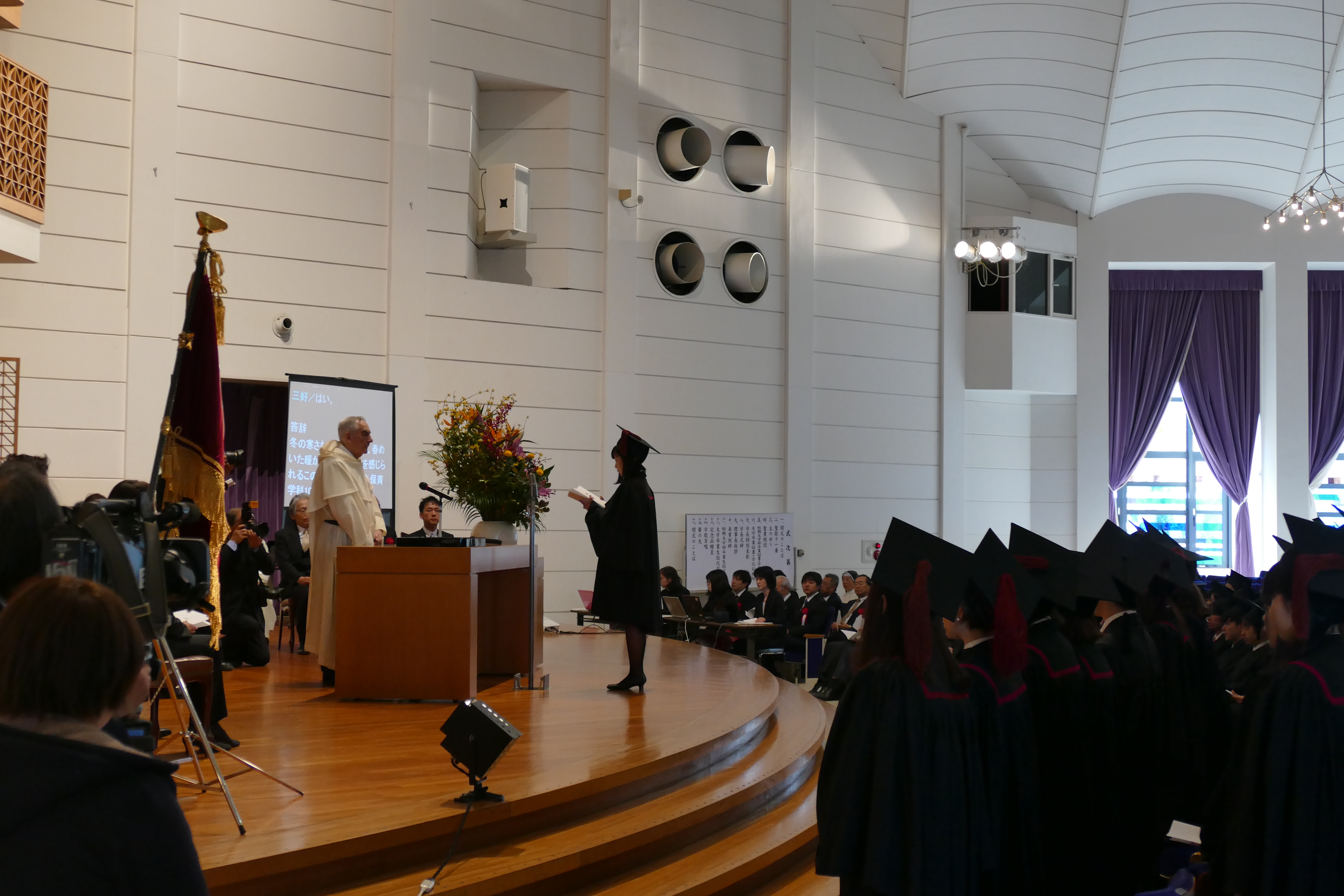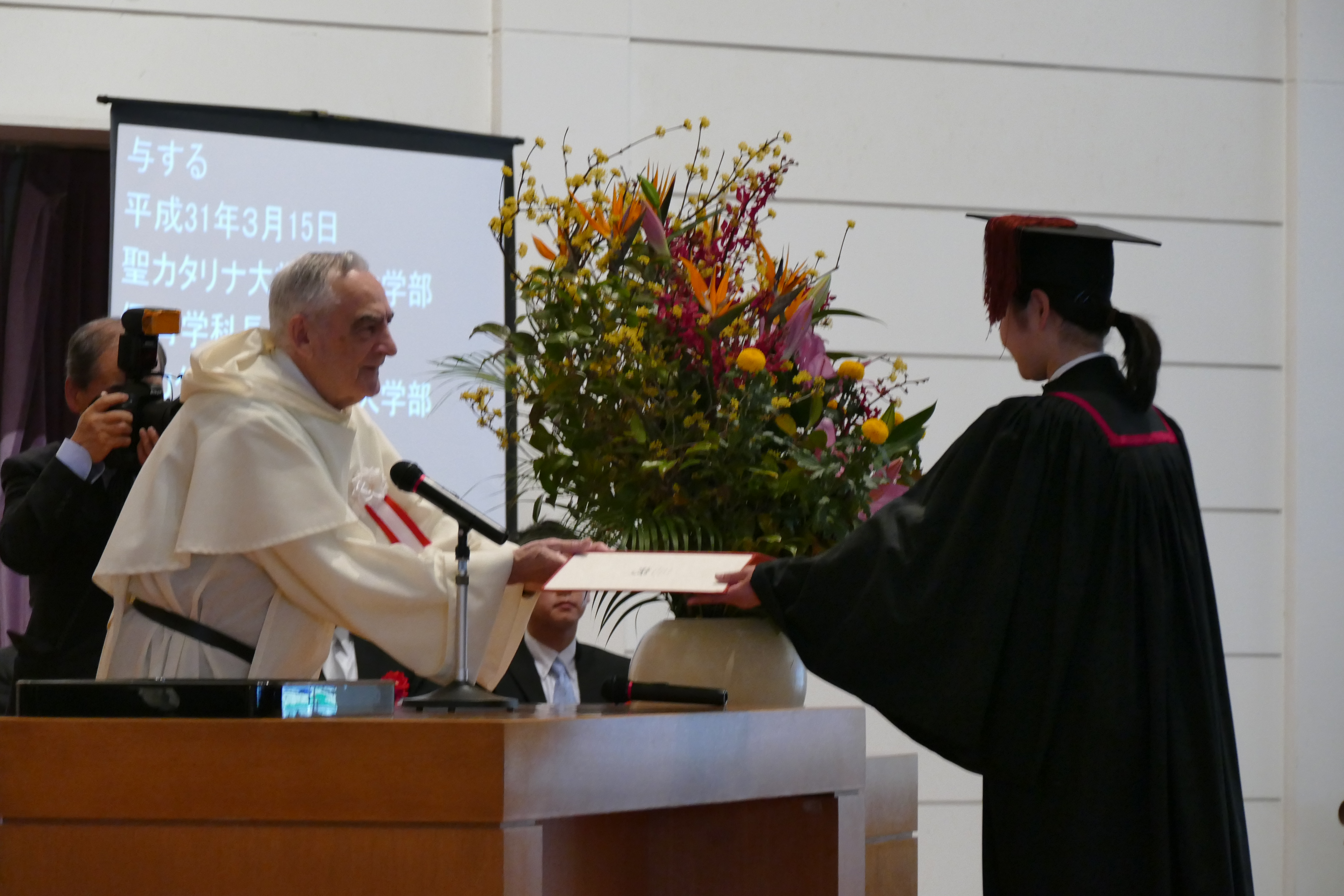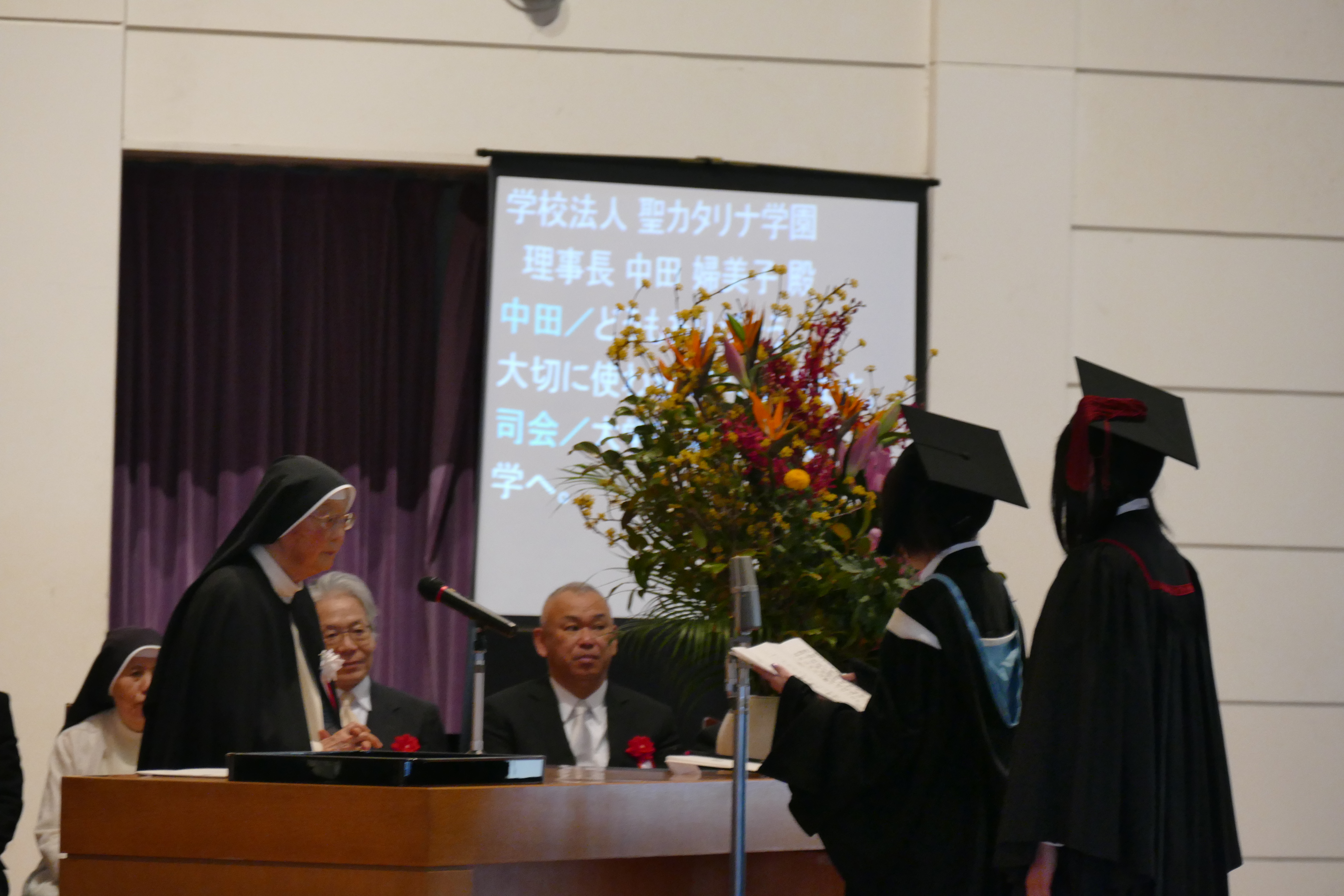 3月15日(金)、北条キャンパスの聖カタリナホールにて、平成30年度聖カタリナ大学・聖カタリナ大学短期大学部卒業証書・学位記授与式が挙行されました。