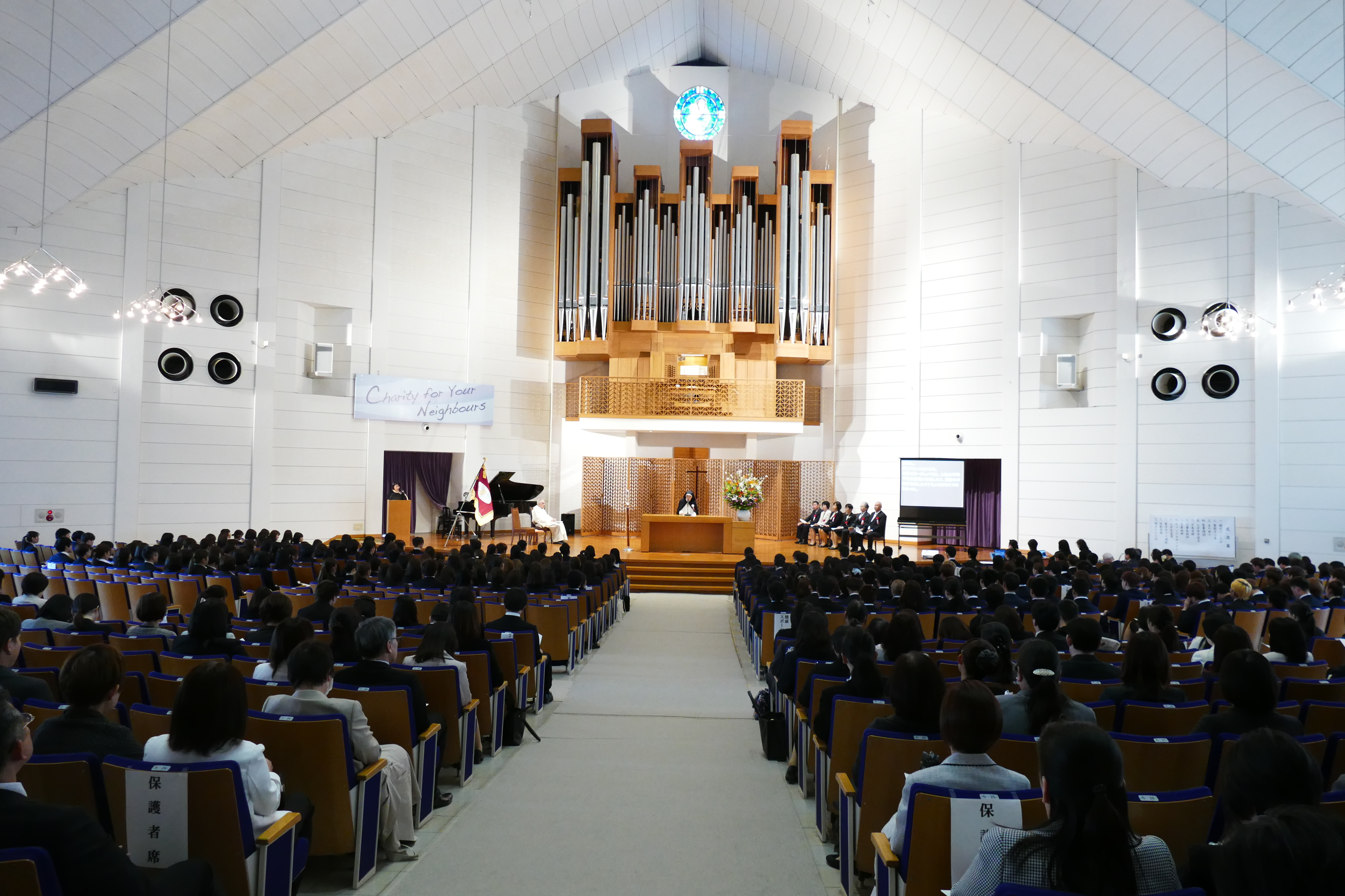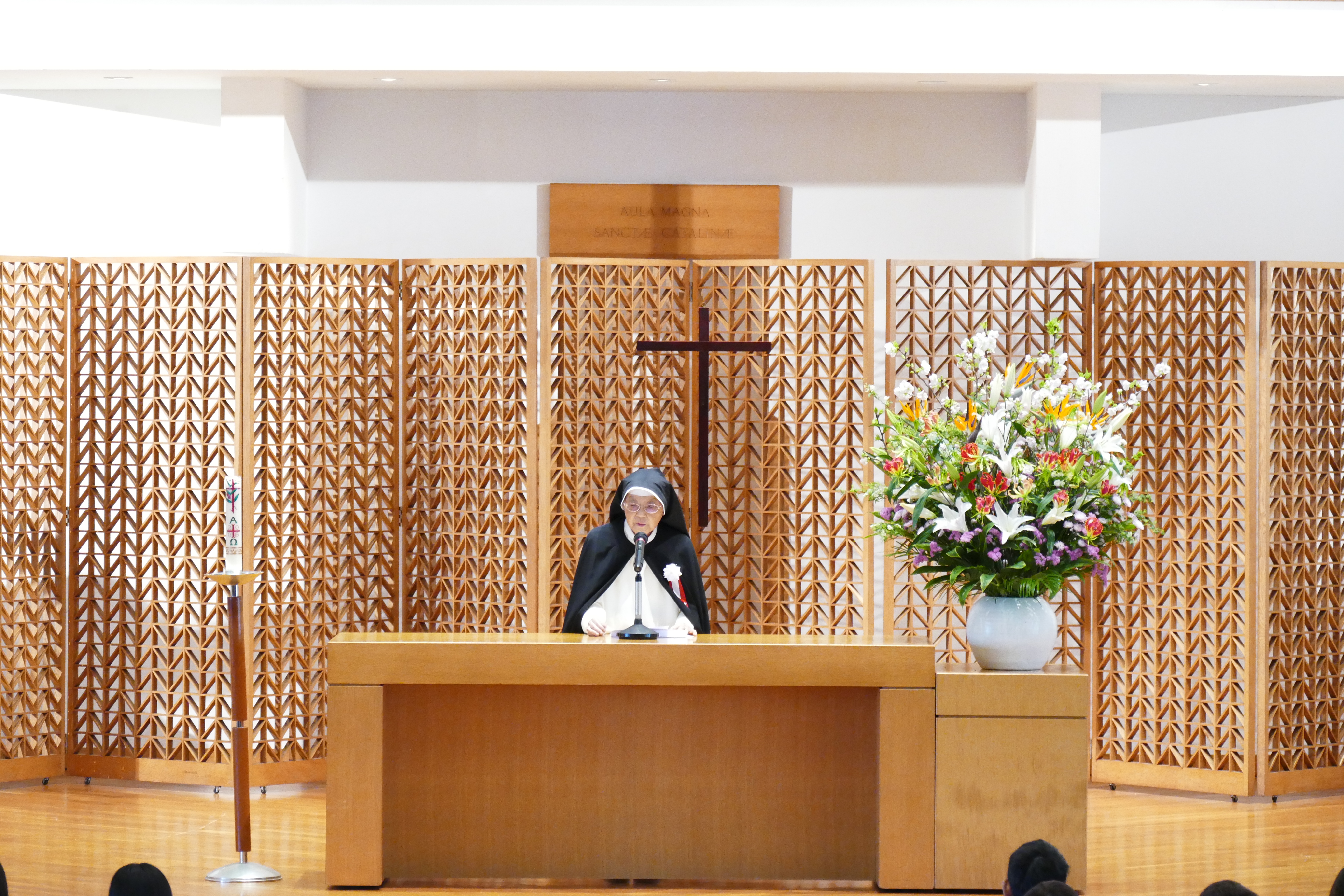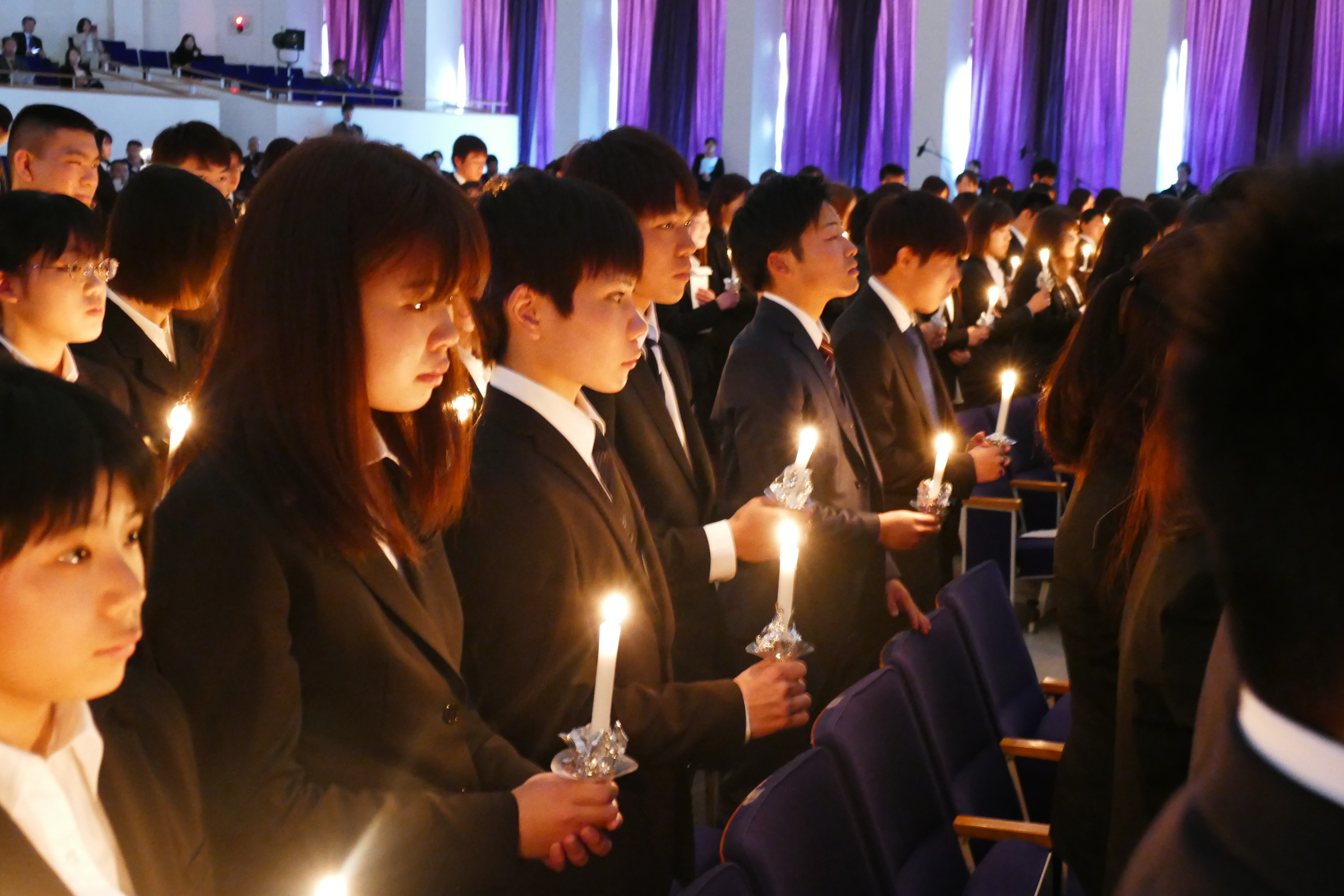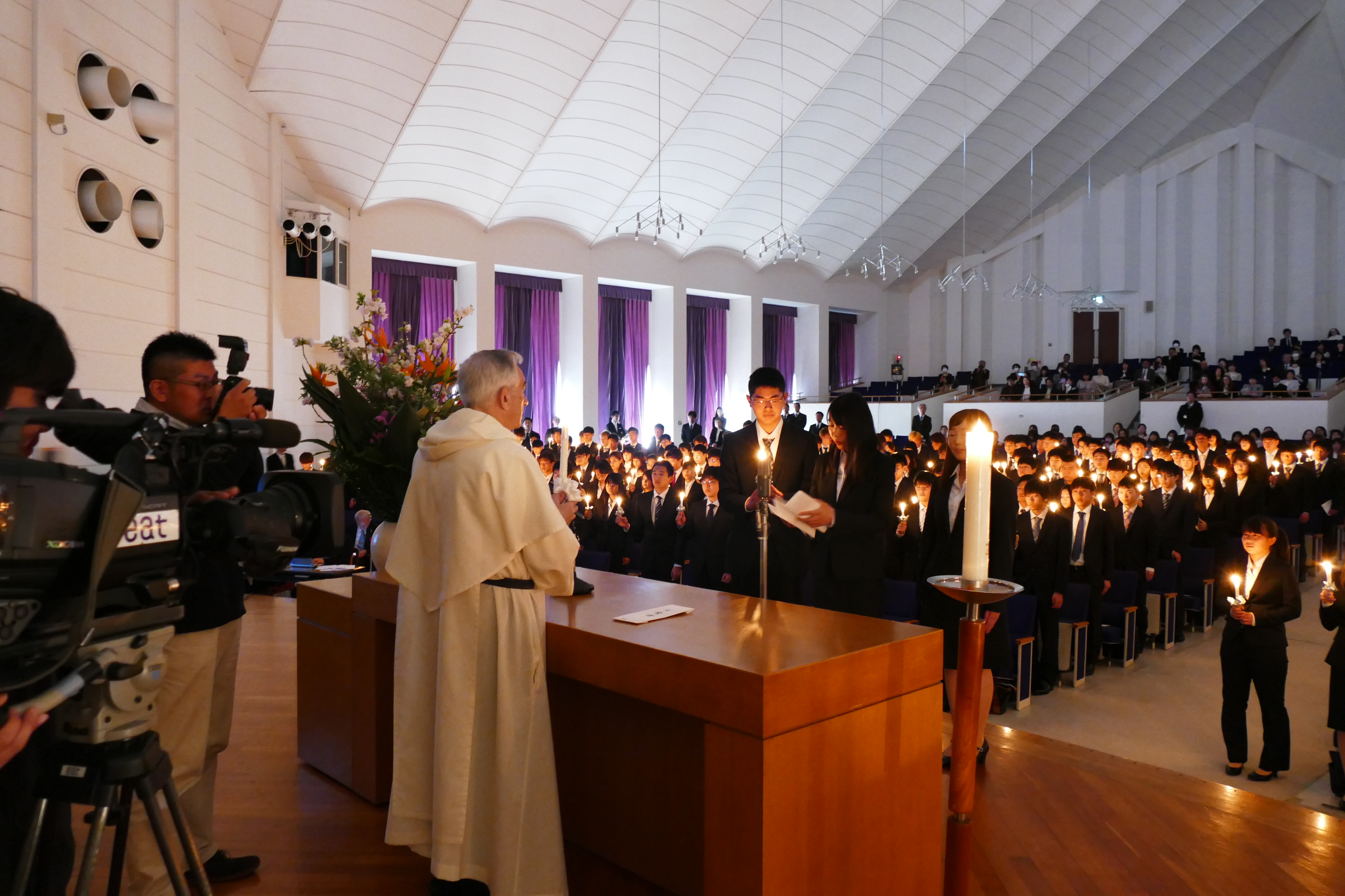 4月3日(水)午前10時から聖カタリナ大学短期大学部第54回 ・聖カタリナ大学第32回入学式が聖カタリナホールにおいて挙行されました。 学長から入学許可宣言をうけ、新入生は聖カタリナ大学・聖カタリナ大学短期大学部の学生となりました。 そしてキャンドルサービスの光の中で、入学生代表が抱負を胸に入学の宣誓を行いました。 新入生の皆さん、ご入学おめでとうございます。